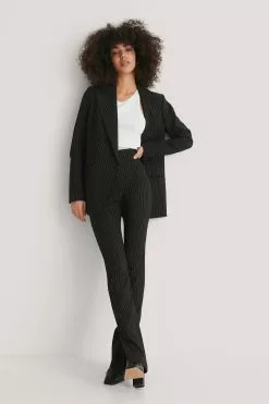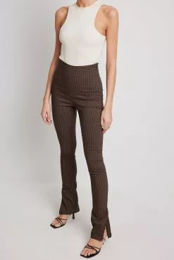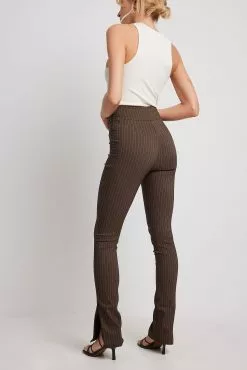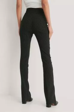 These pants feature an elasticized high waist with a concealed zipper closure on the side, a stretchy, comfy fit with a slit detail at the hems and a striped pattern. Inseam length: 84 cm / 33.07 in.