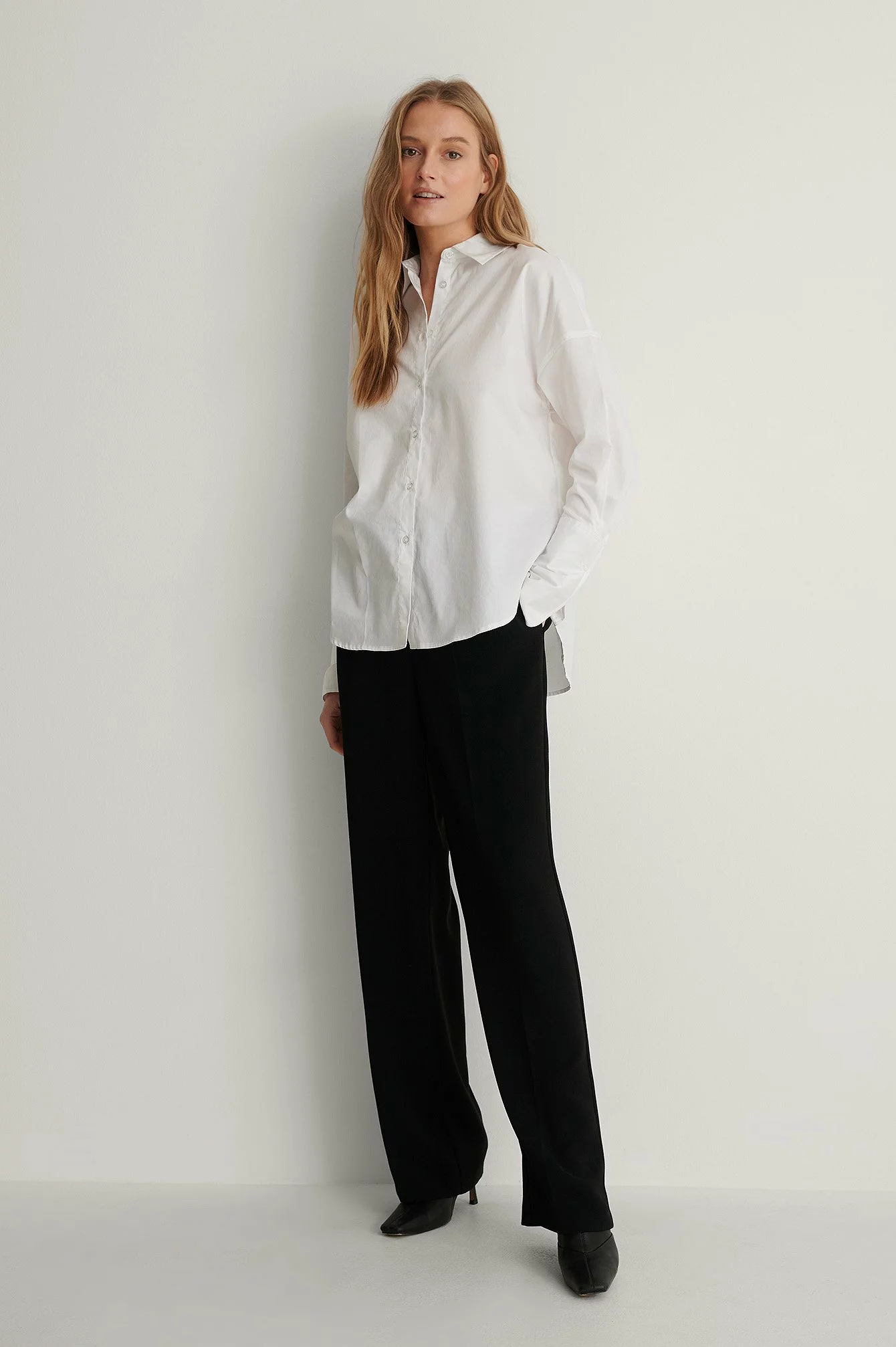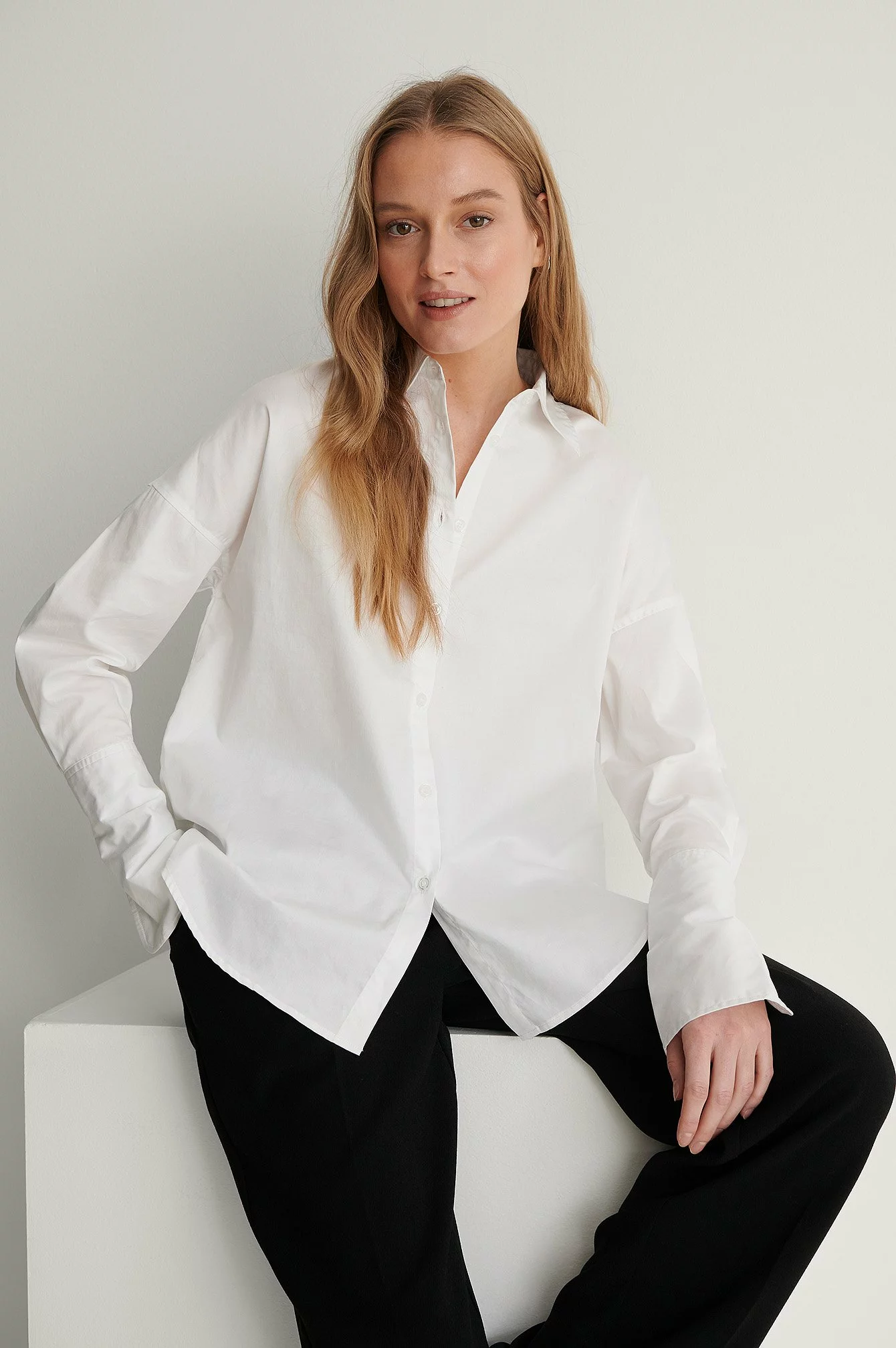 This shirt features a striped pattern, a classic collar, a button closure down the front, dropped shoulders, long sleeves with wide cuffs and one button closure at the cuffs, a relaxed loose fit and a normal length.