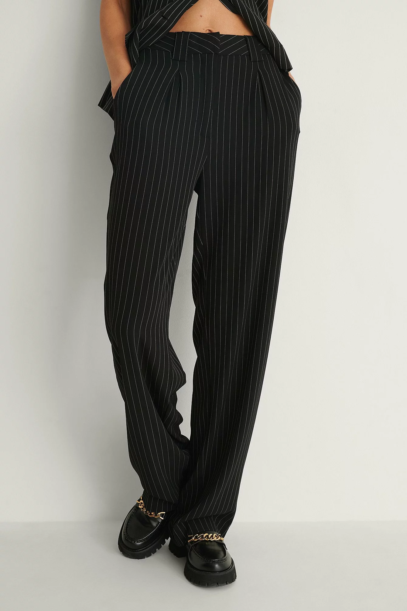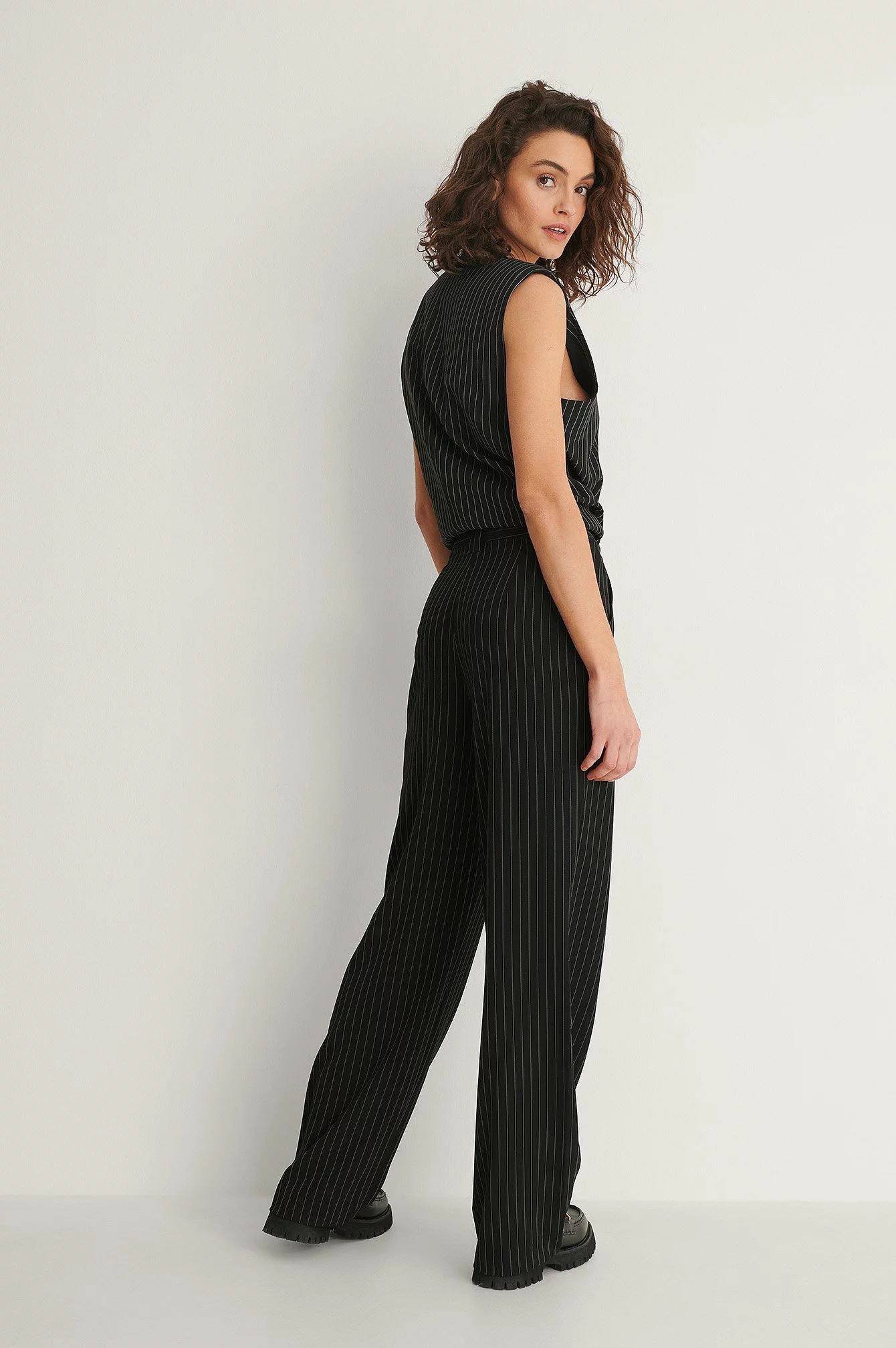 These pants feature a high waist, two side slanting pockets, a zip and hook closure, wide legs and a soft touch.
