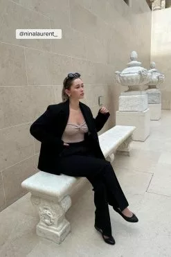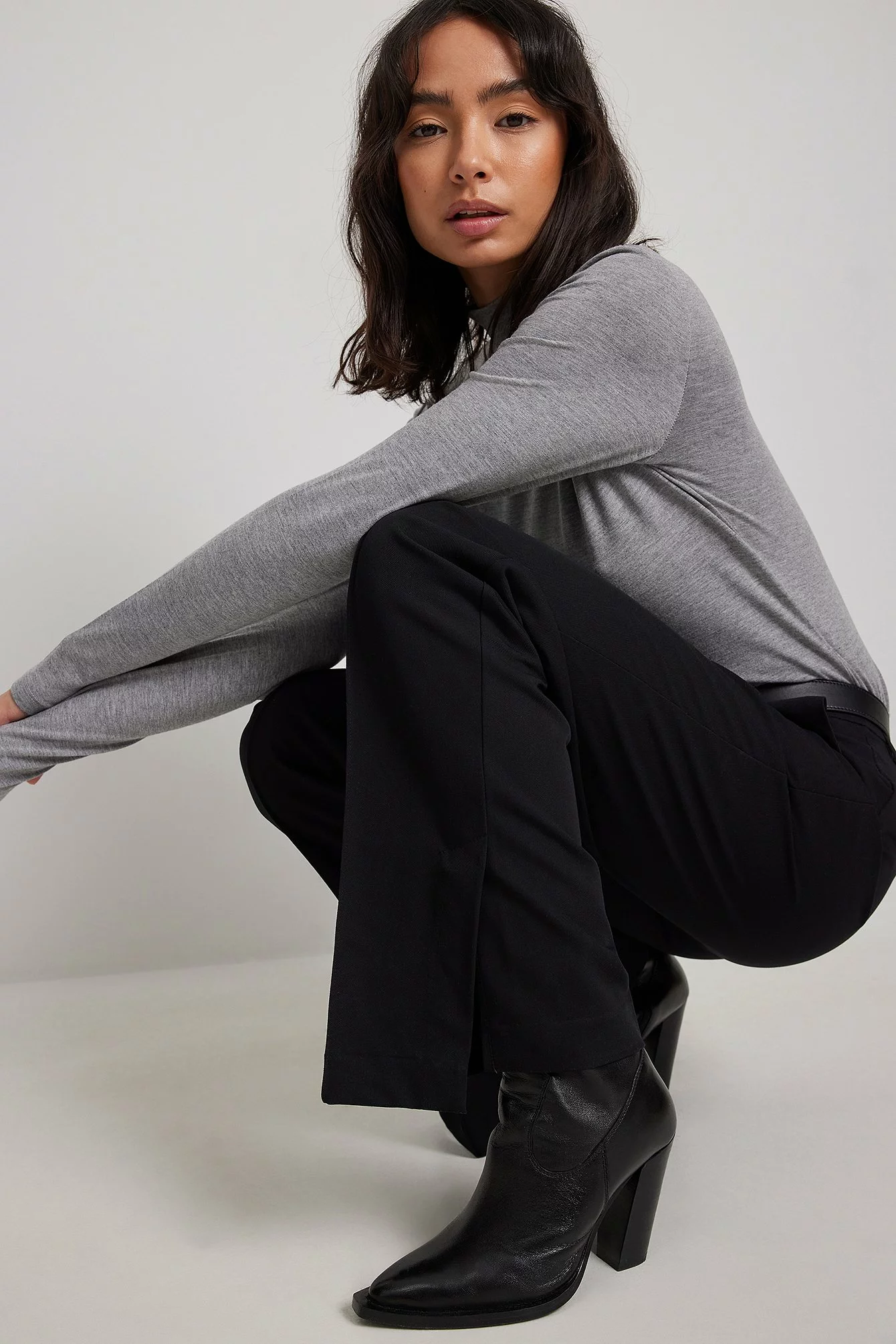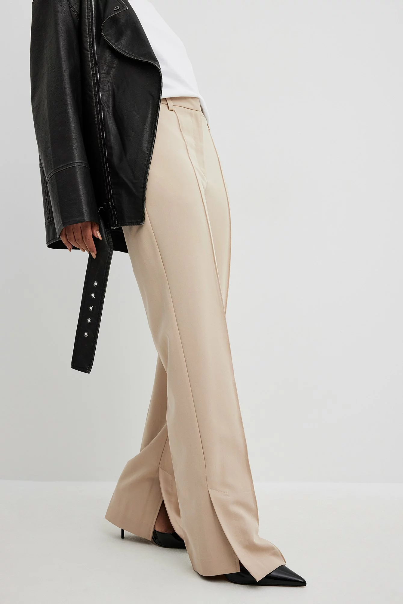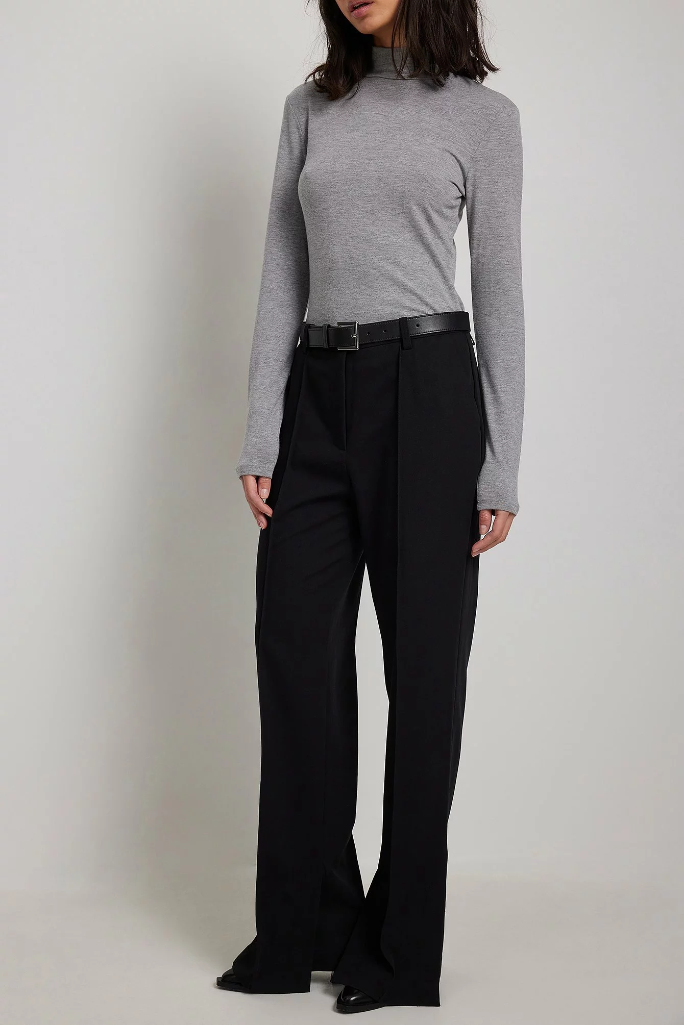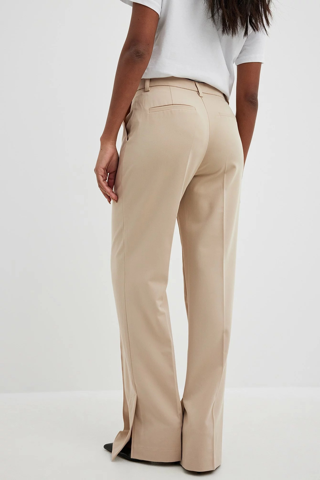 These suit pants feature a high waist with belt loops, a zipper, hook and button closure, a back mock pocket, side pockets, a pleat detail, a straight leg and two side slits on each side. Inseam length: 83,5 cm / 32.87 in.