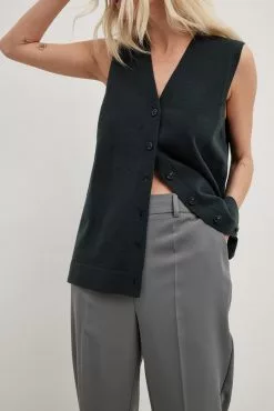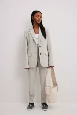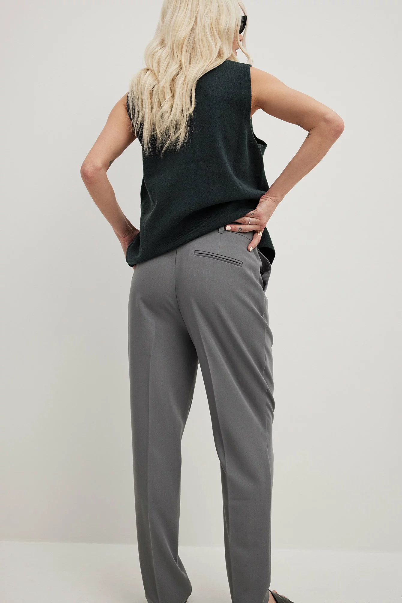 These suit pants are tailored and feature a high waist fit. They have side slant pockets and a back mock pocket. These suit pants feature cropped length. Inseam length in size 36: 70 cm / 27.55 in.