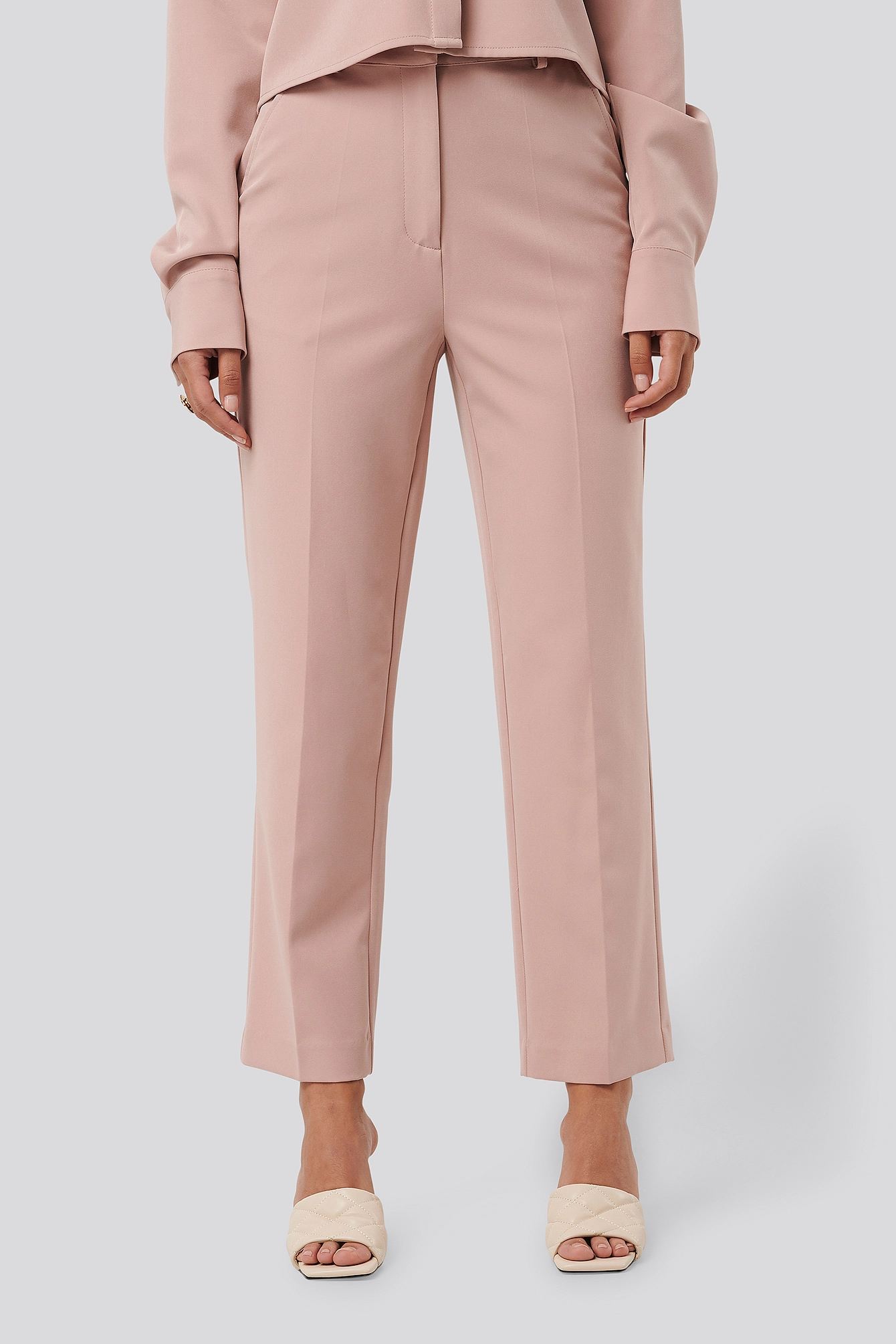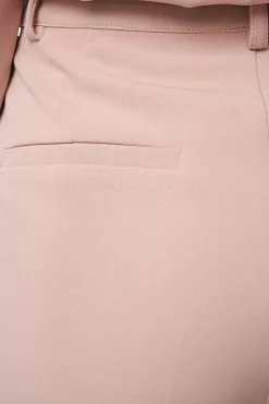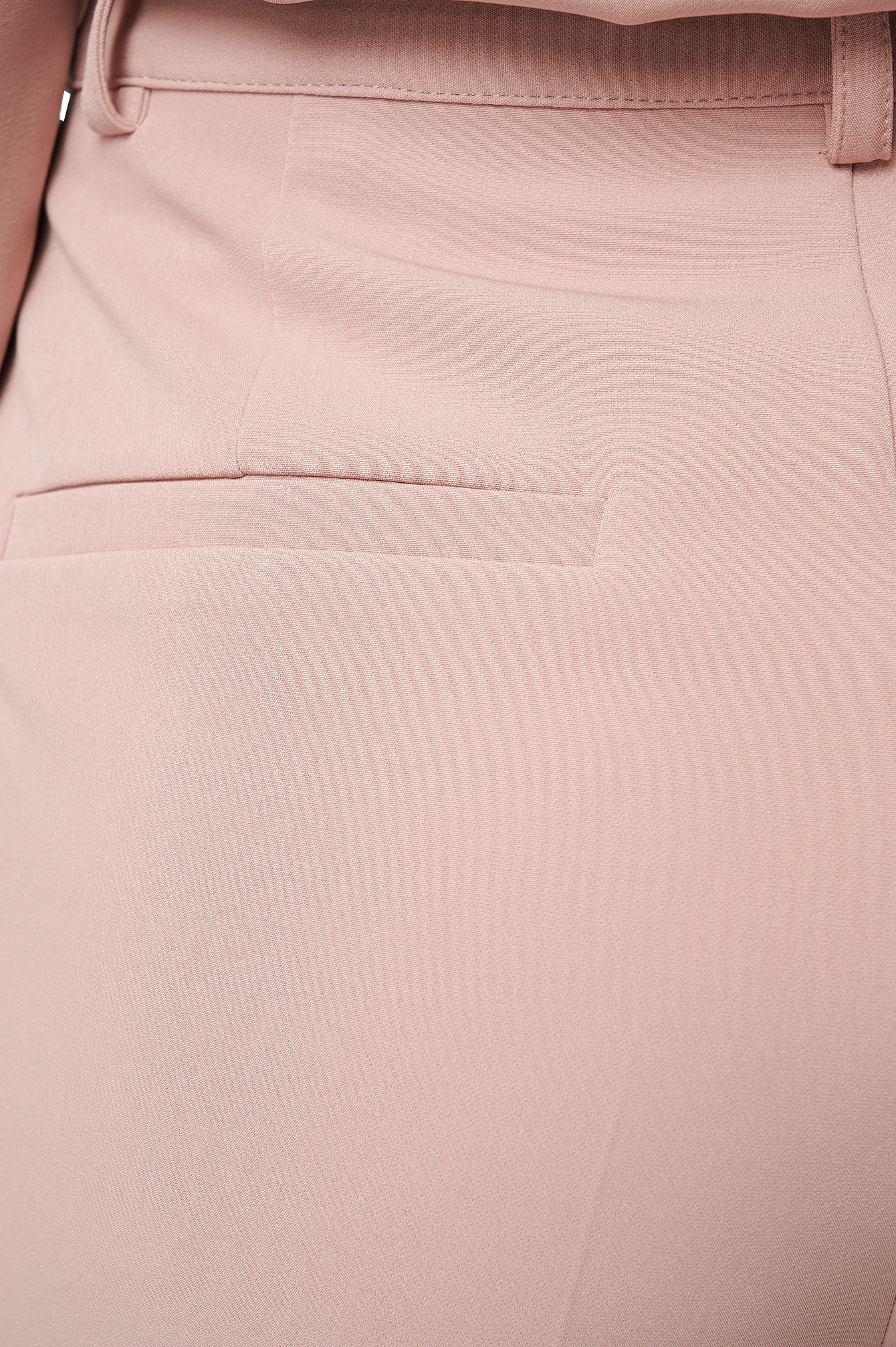 These suit pants feature belt loops, two side slanting pockets at the front, two back mock pockets and cropped length.