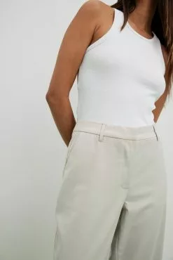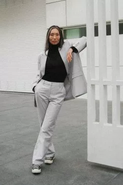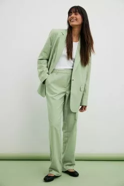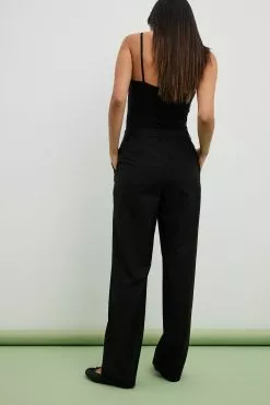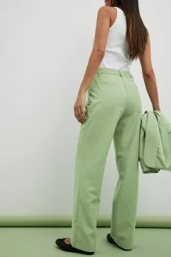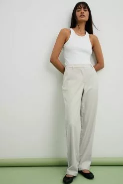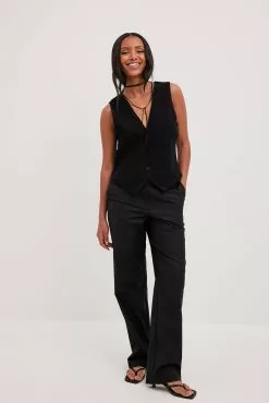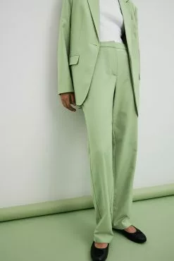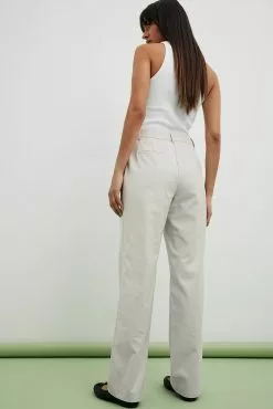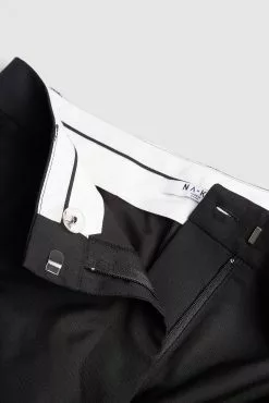 These suit pants are tailored and feature a straight leg. They have a high waist fit and side slant pockets. These suit pants feature a zipper, hook and button closure. Inseam length in size 36: 80 cm / 31.49 in.