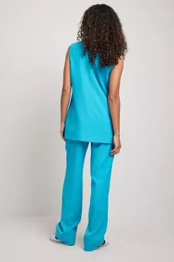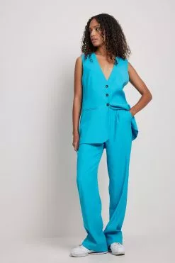 These suit pants feature a waistband with belt loops and a zipper, hook and button closure. They have a pleat detail on the front and 2 front pockets. These suit pants feature 2 mock back pockets and wide, straight legs. Inseam length in size 36: 80 cm / 31.49 in.