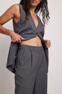 These suit pants feature a waistband with belt loops and a zipper, hook and button closure. They have a pleat detail on the front and 2 front pockets. These suit pants feature 2 mock back pockets and wide, straight legs. Inseam length in size 36: 80 cm / 31.49 in.