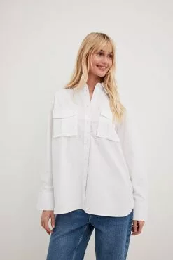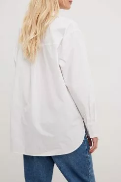 This shirt is oversized and made of cotton and features a classic collar. It has dropped shoulders and open flap pockets on the chest. This shirt features double button cuffs and button closures.