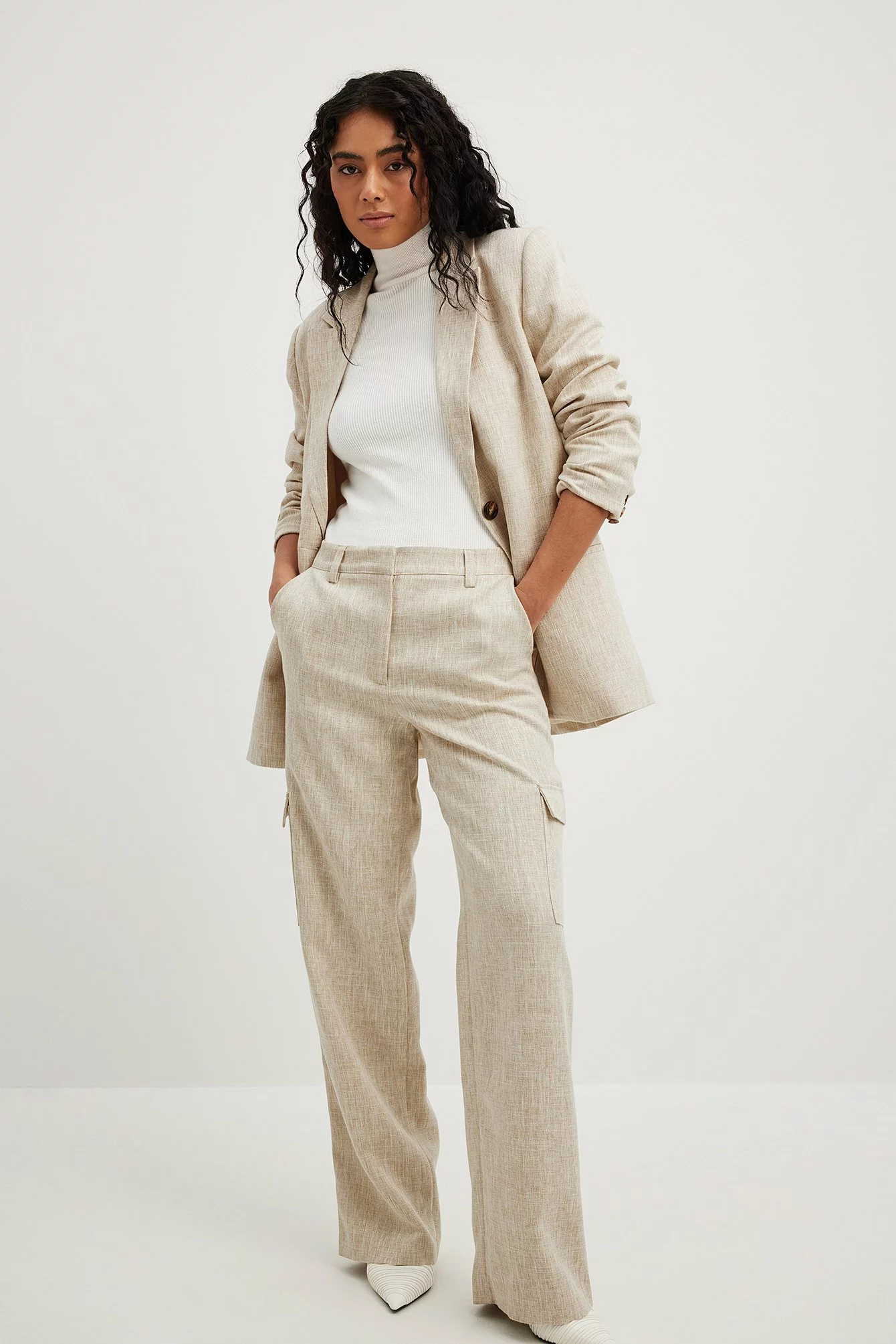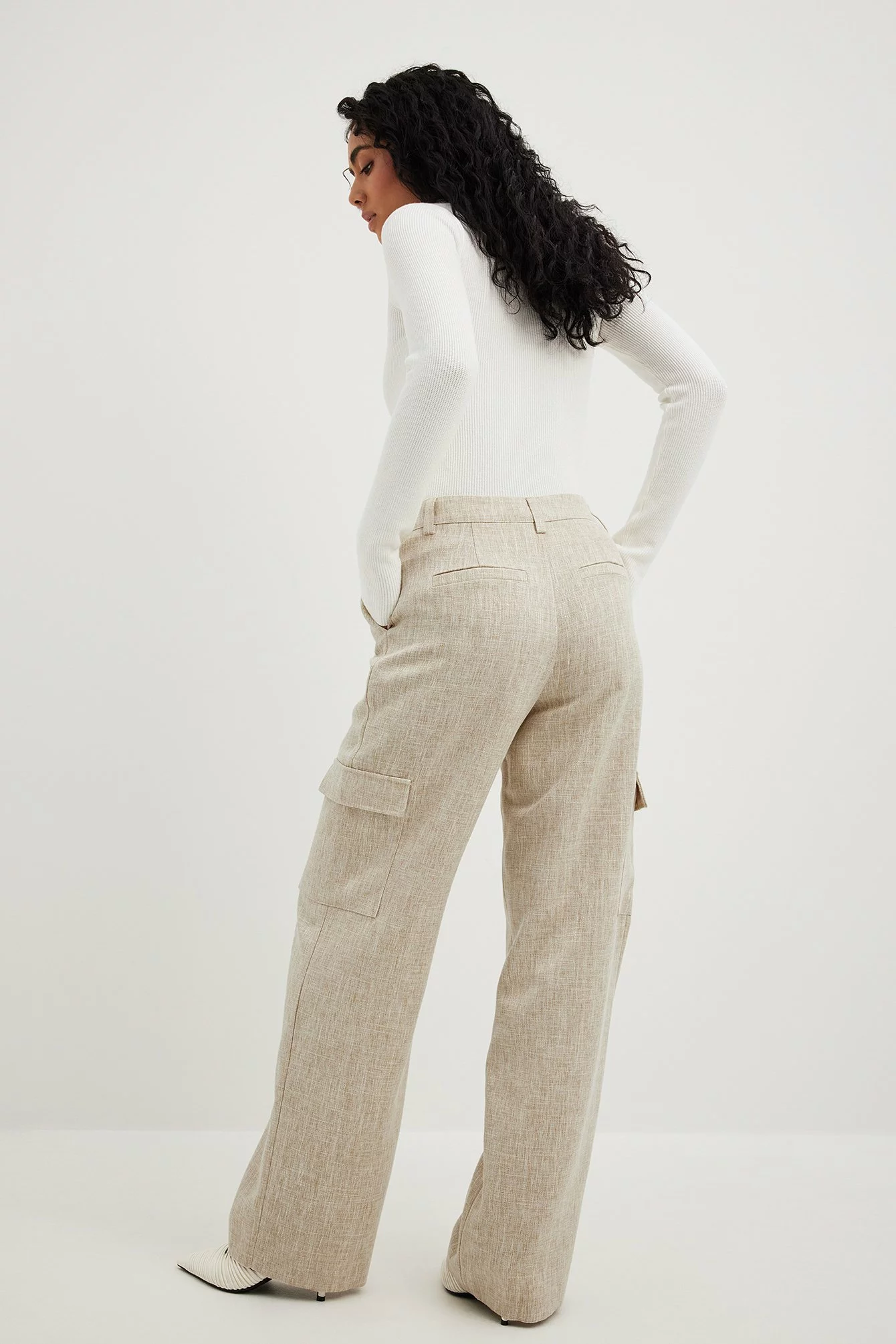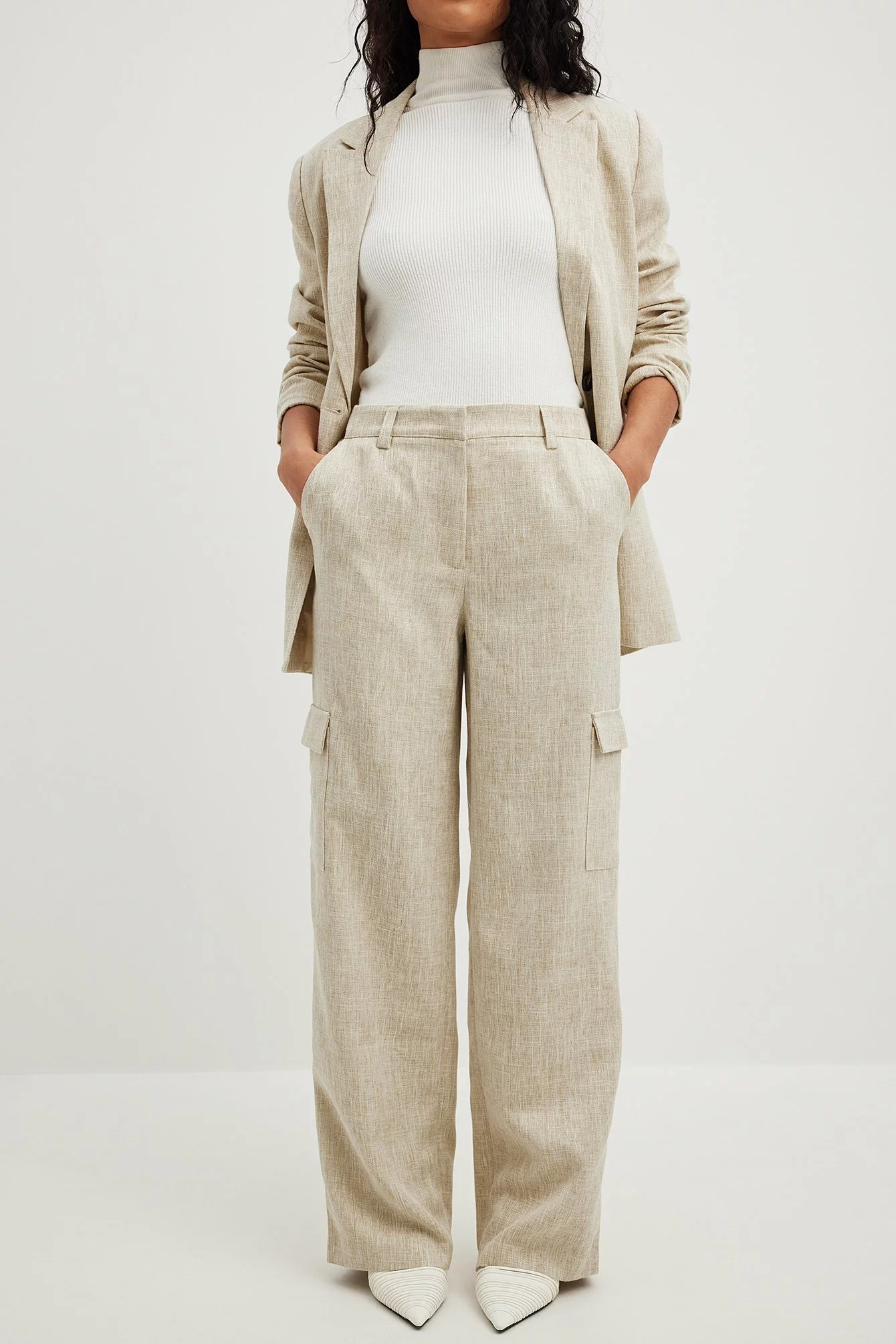 These pants feature a mid waist. They have a tailored fit and a cargo design. These pants feature a straight leg. Inseam length in size 36: 80 cm / 31.49 in.