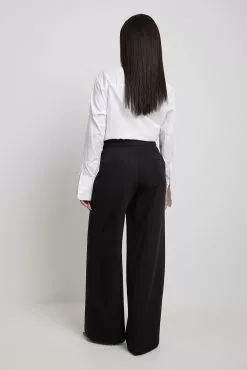 These suit pants feature a high waist fit. They have a wide leg and a pleated design on the front. These suit pants feature side pockets and a back mock pocket. Inseam length in size 36: 81 cm / 31.88 in.