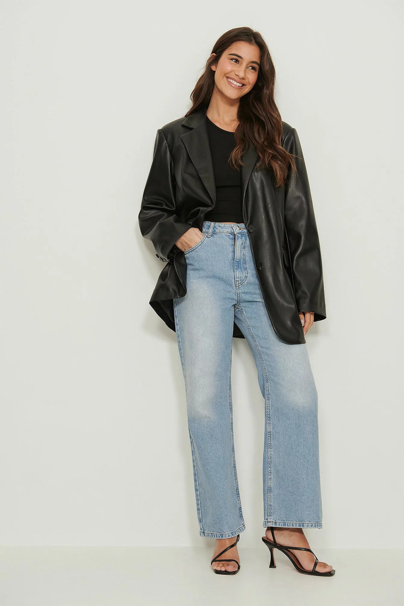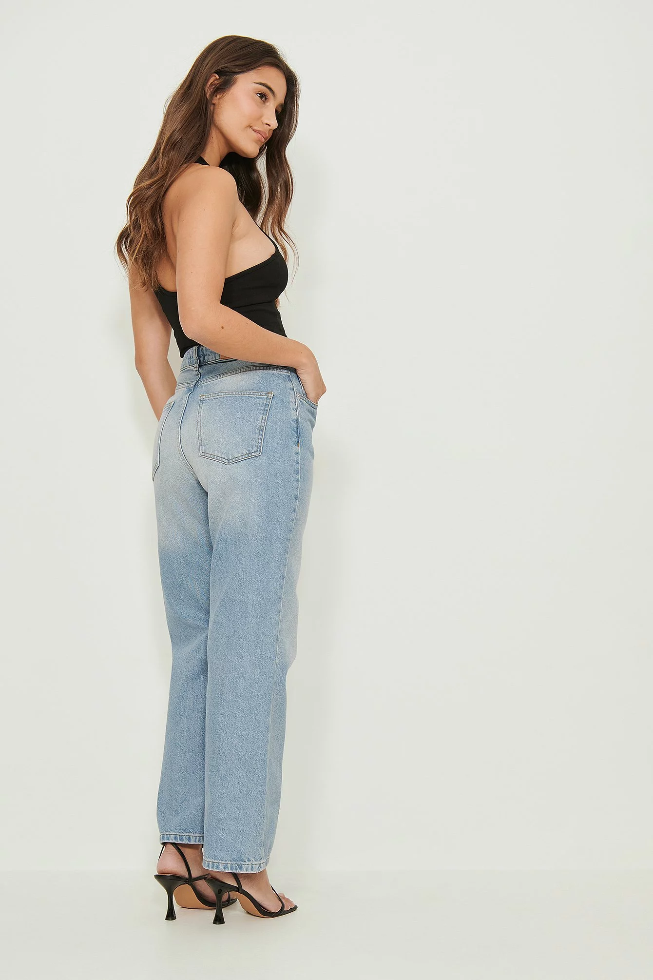 These jeans feature a high waist, belt loops, a zipper and button closure, a five-pocket design, a relaxed fit and cropped length. These jeans are delivered in a more sustainable packaging bag that can also be used as a laundry bag. Inseam Length in Size 36: 72 cm / 28.3 in. Waist in Size 36: . Seat in Size 36: .