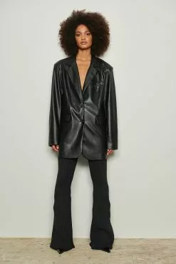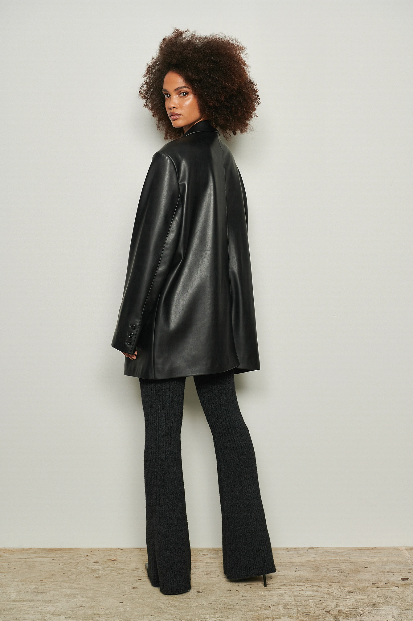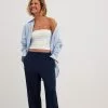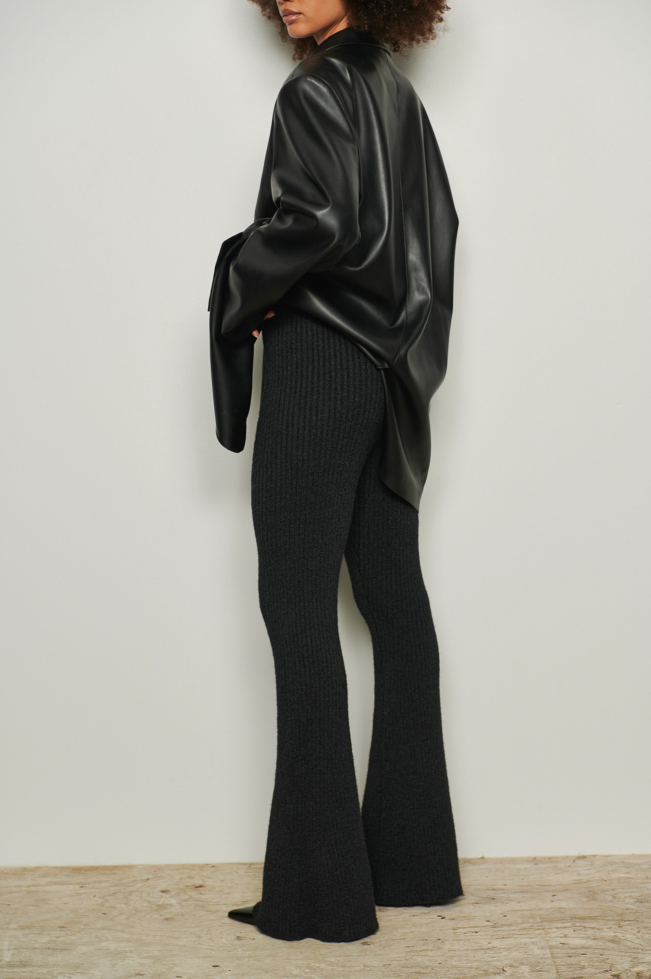These pants feature an elasticized waist, long wide legs and a rib design.
