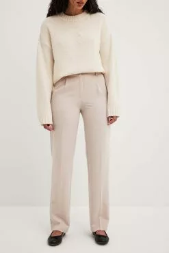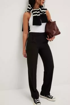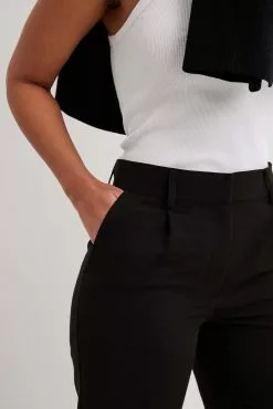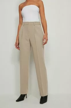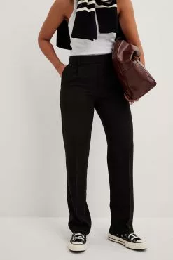 These suit pants feature a mid rise fit, belt loops, two side pockets, a zipper, hook and button closure, two back mock pockets and a wide leg. Inseam length: 79 cm / 31.10 in.