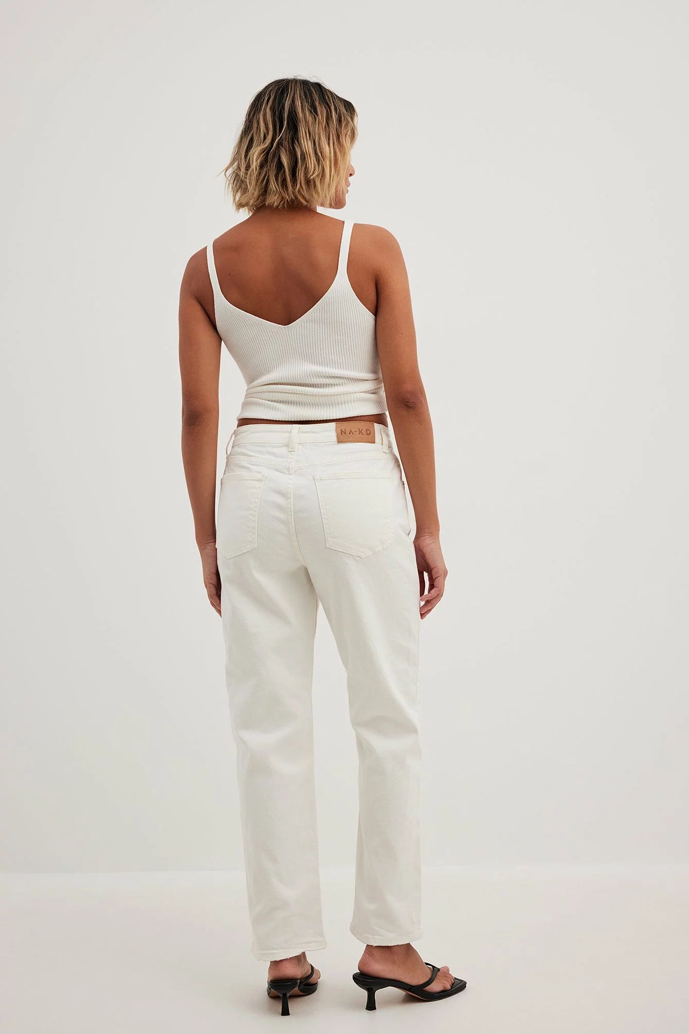 These jeans feature a mid waist, a five-pocket design and a slim fit.