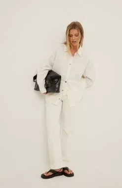 This shirt features a classic collar, silver-colored button closures, long sleeves and an oversized fit.