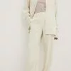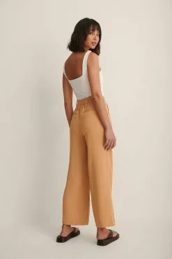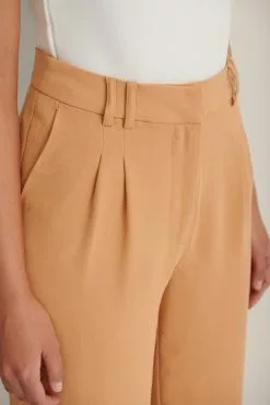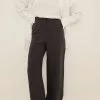 These pants feature an elasticized high waist with belt loops and a zipper, hook and button closure, 2 back mock pockets, 2 side pockets and a loose fit.