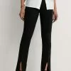 These leggings are ribbed and knitted and feature an elasticized waist and side zipper closures with bottom hems.