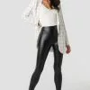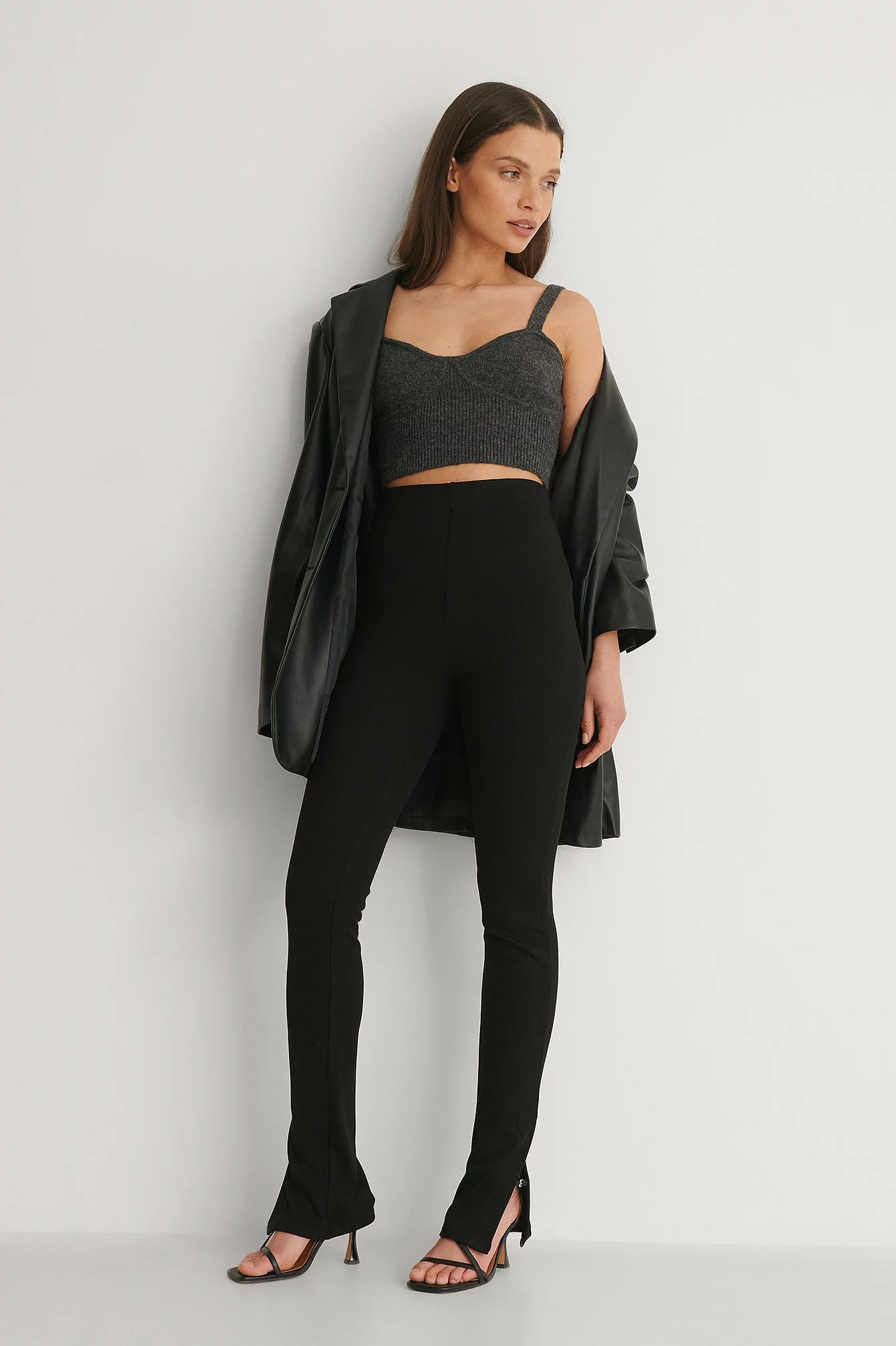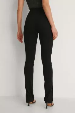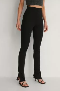 These pants feature a high waist, a high ankle slit on each leg, a tight, comfy fit and a ribbed material.