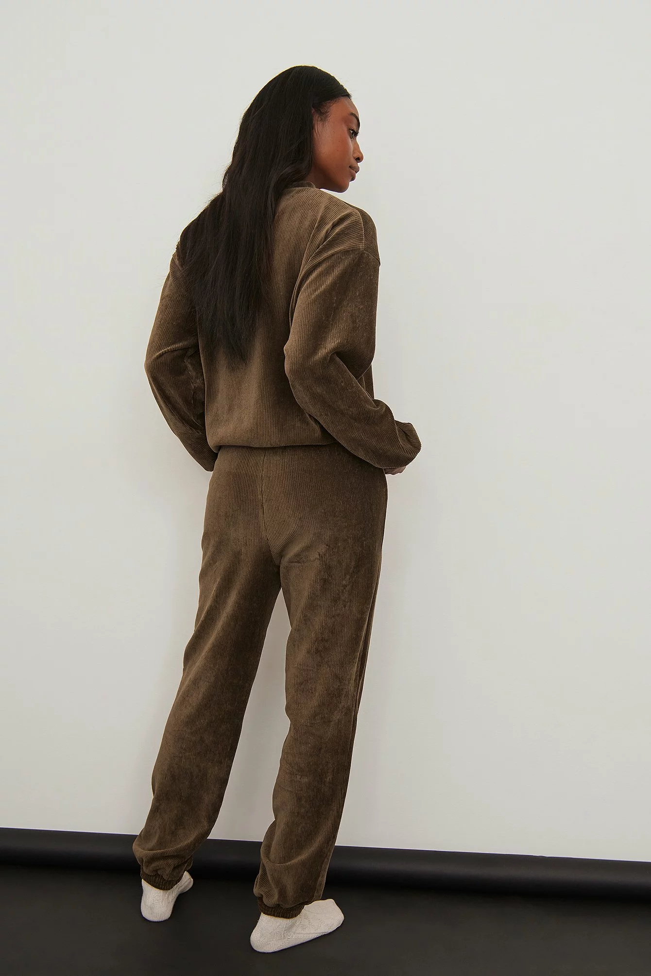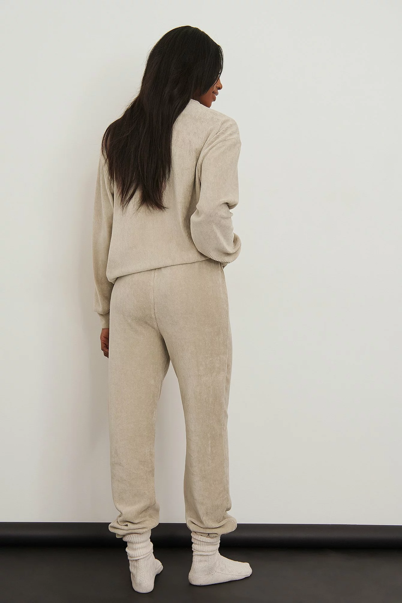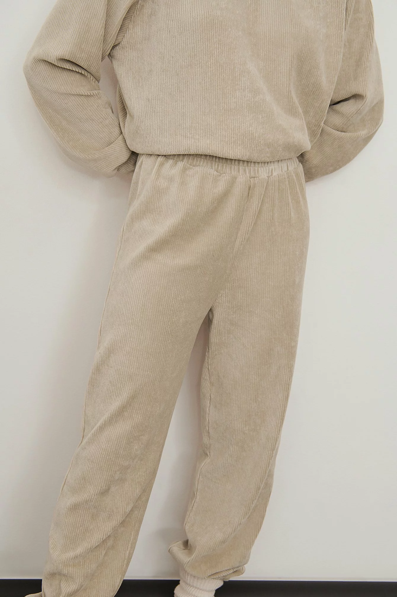 These sweatpants feature a high waist, an elastic band at the waist, ribbings at hem and a material in corduroy.