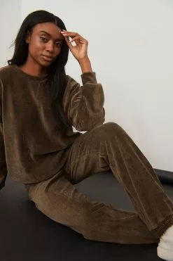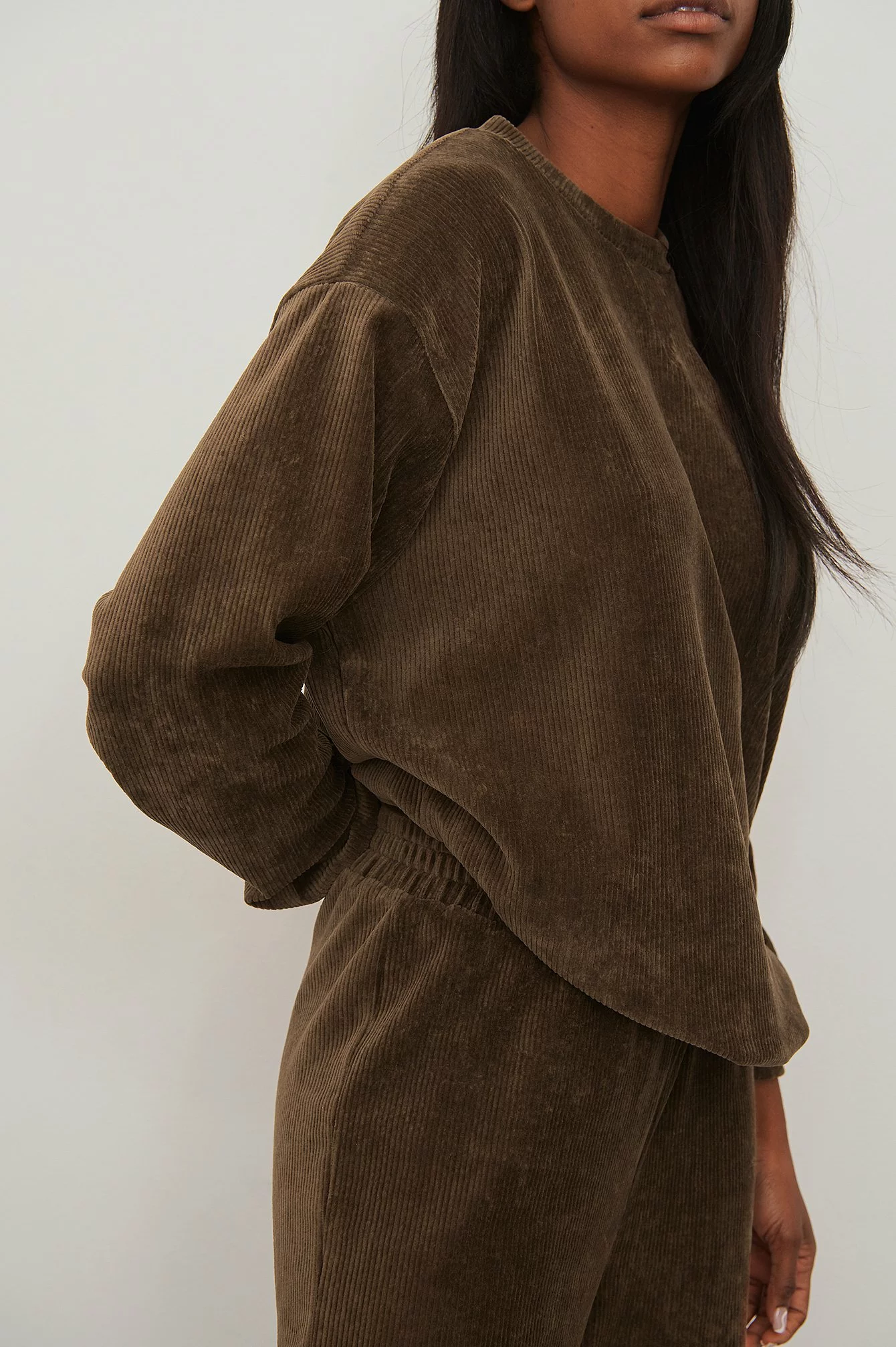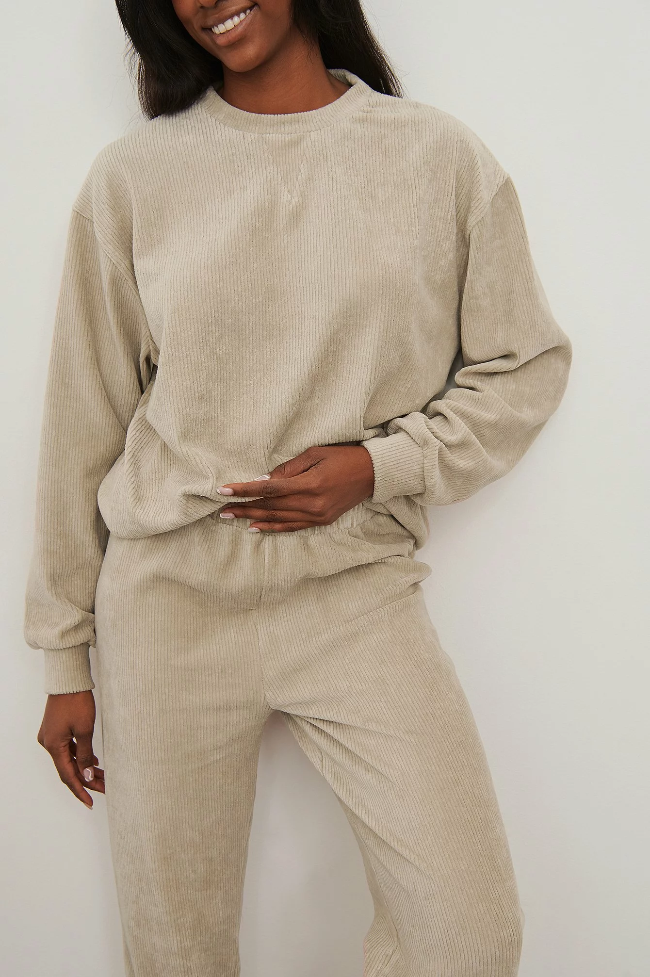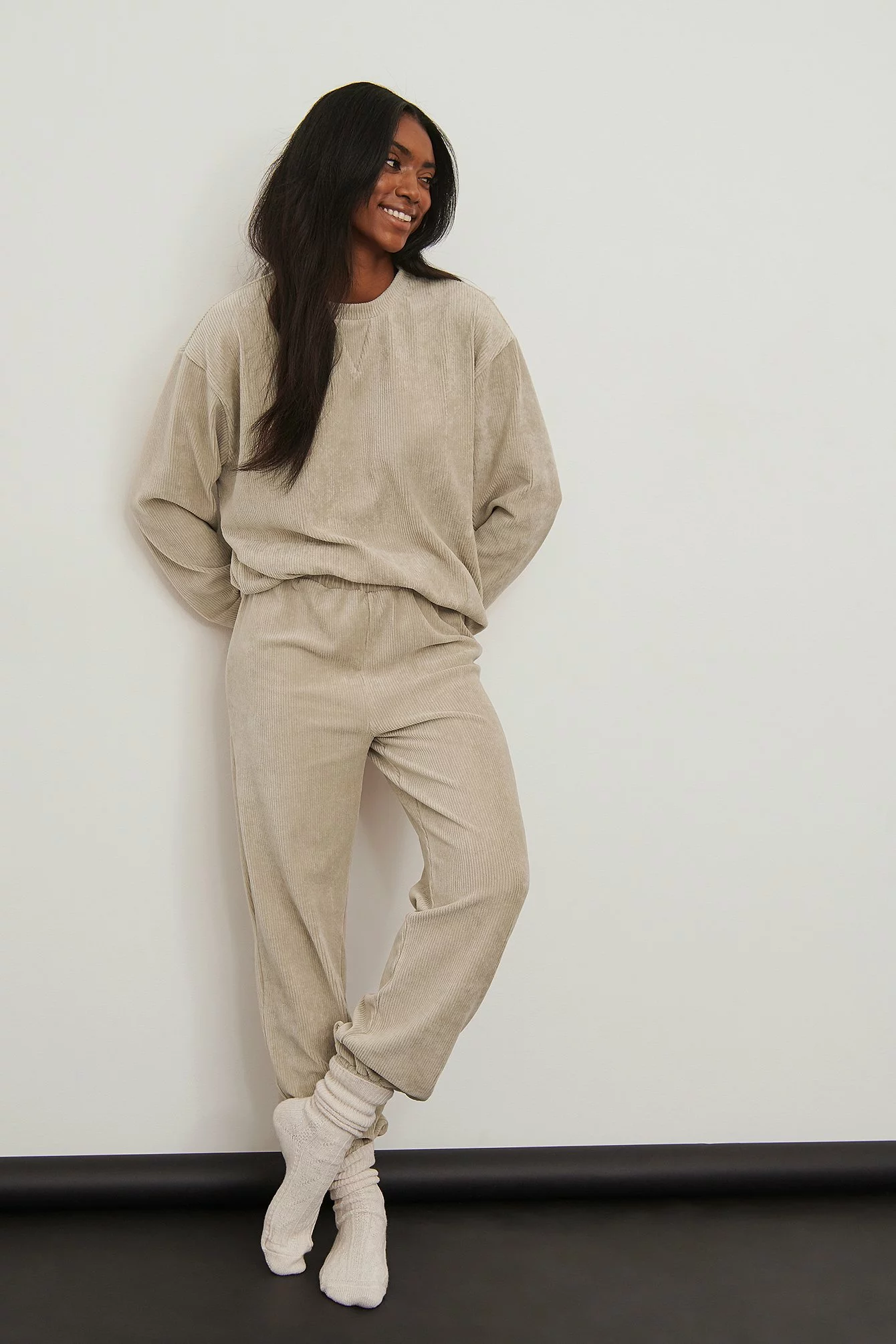 These sweatpants feature a high waist, an elastic band at the waist, ribbings at hem and a material in corduroy.