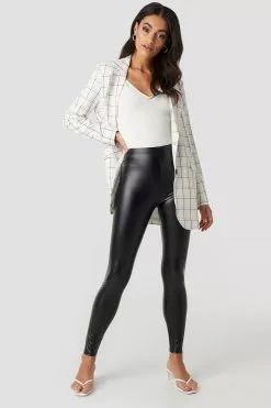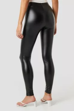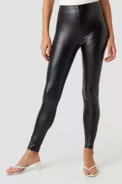 These leggings by NA-KD are shiny and elastic and feature a high elastic waist.