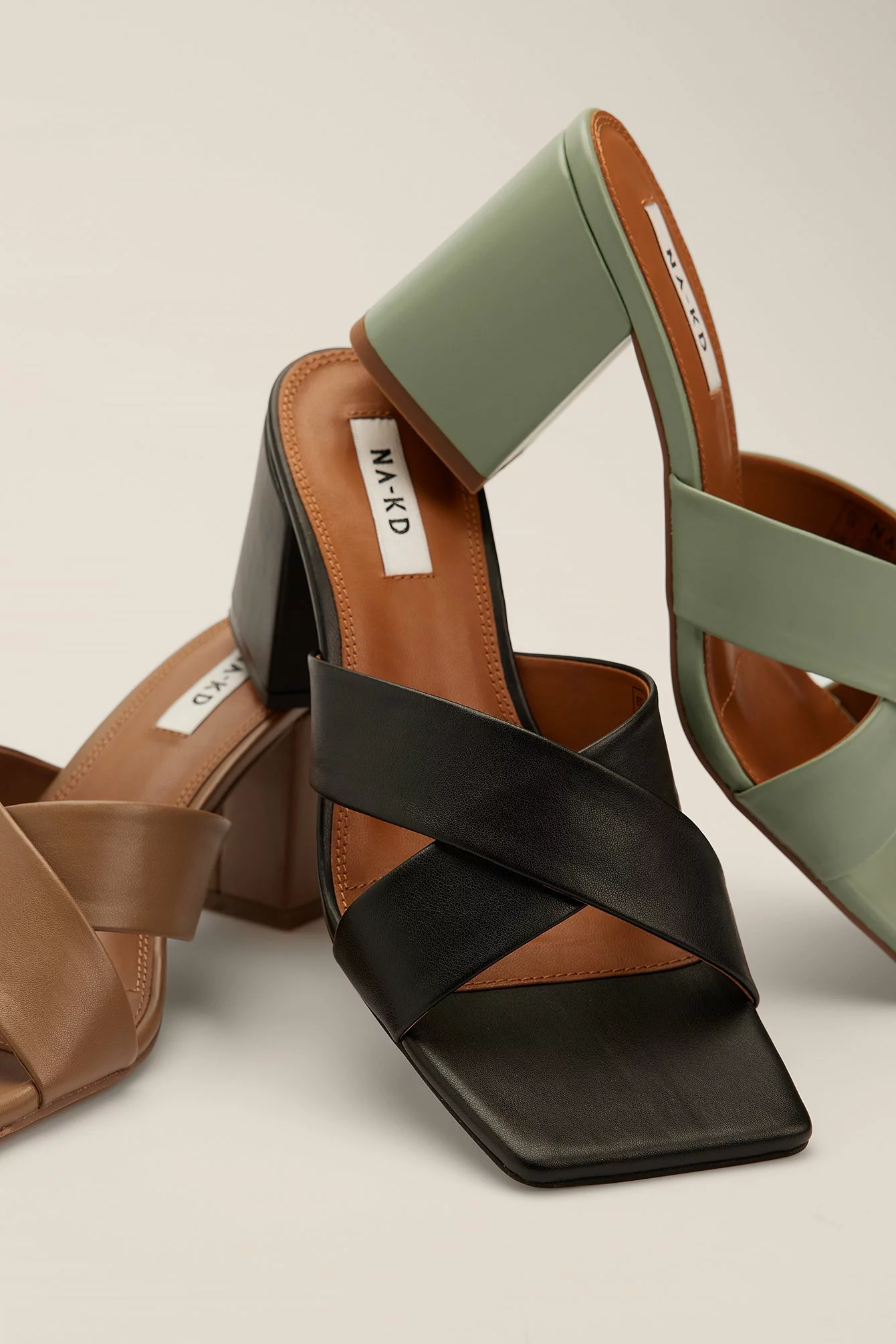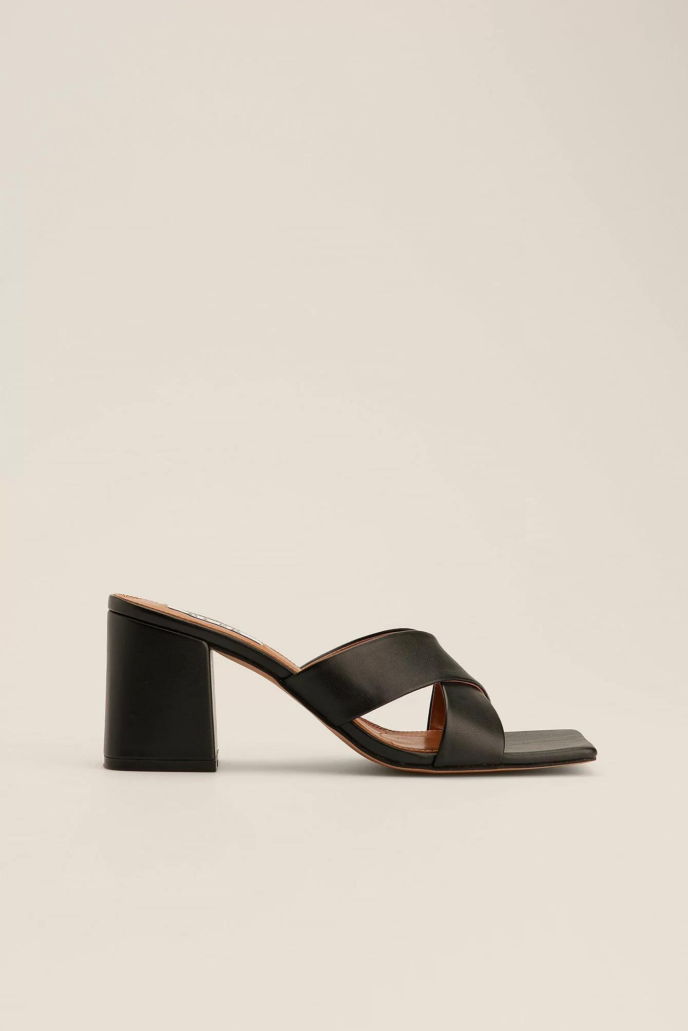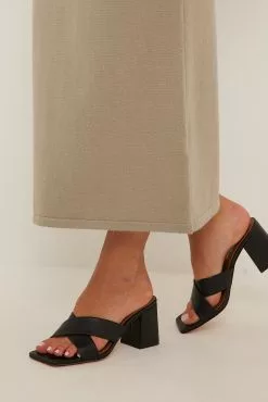 These mules feature a block heel, a cross strap and a square toe. Measurements in size : Heel height: 7 cm / 2.75 in.