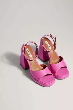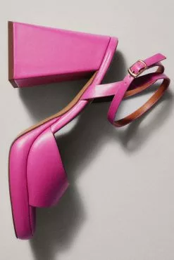 These heels feature a chunky heel. They have an adjustable ankle-strap fastening and a rounded toe. Measurements in size 39: Sole height: 2 cm / 0.8 in. Heel height: 10,7 cm / 4.2 in.