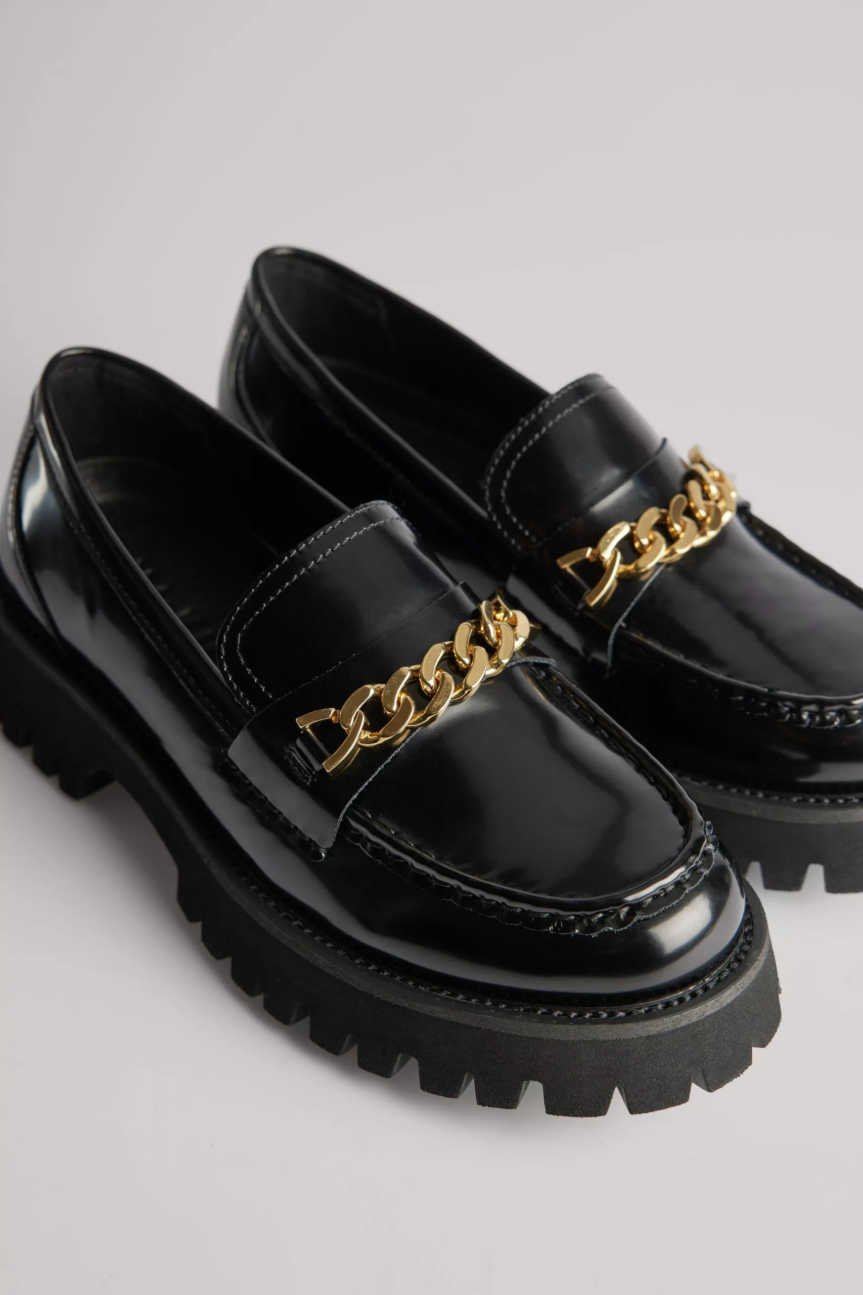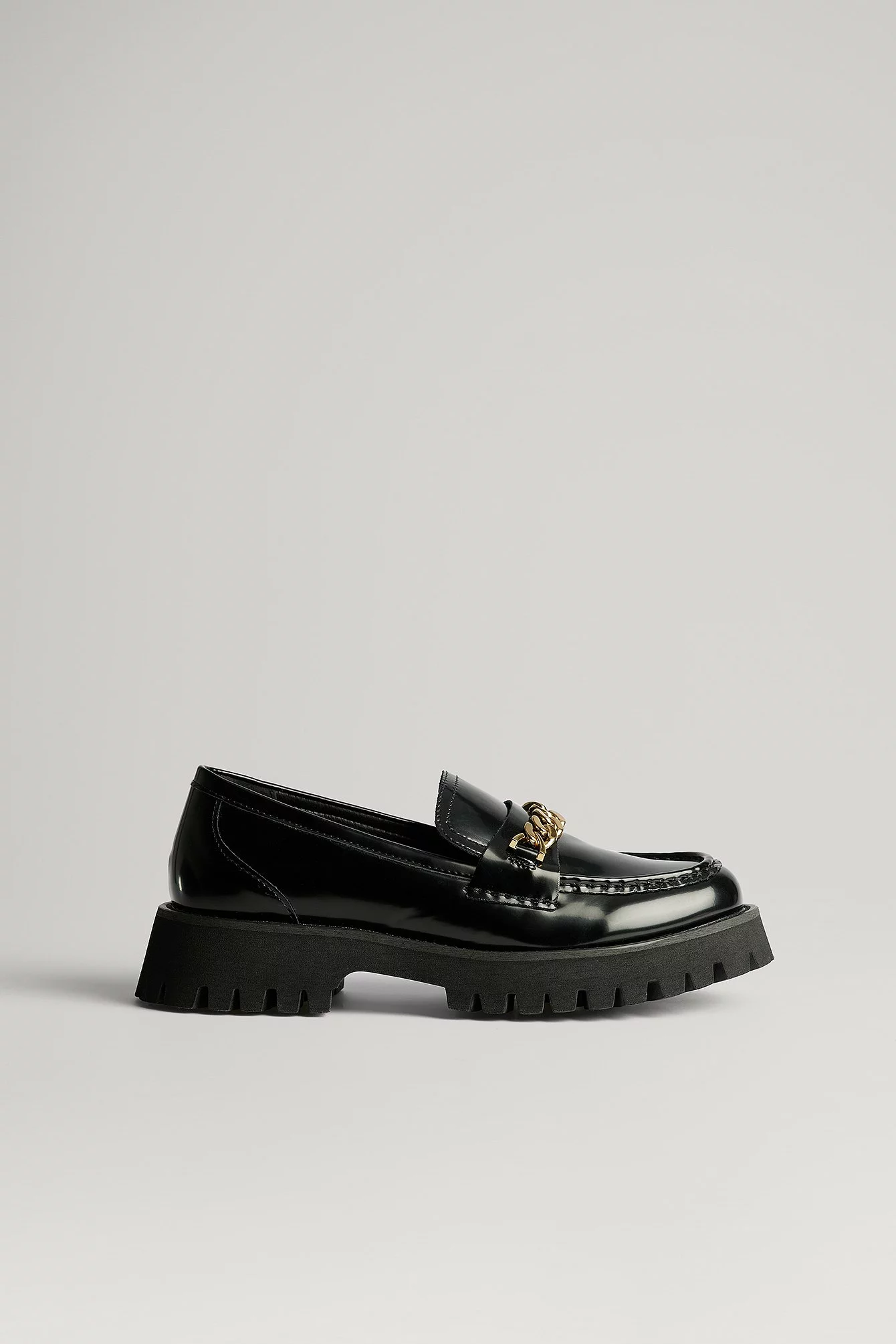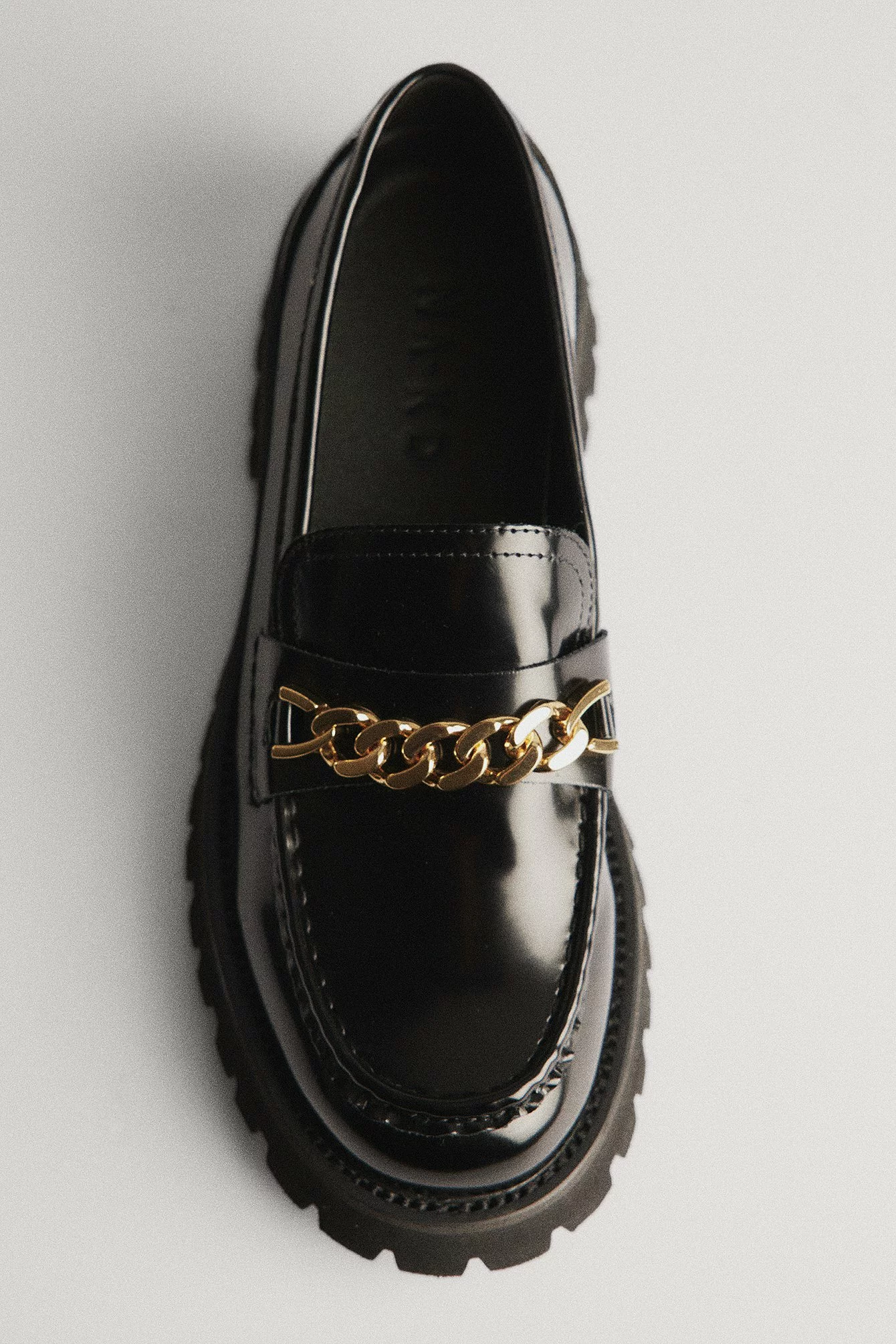 These loafers are shiny and feature a classic design. They have a thick chain detail at the top and a chunky rubber sole. Measurements in size : Sole height: 4 cm / 1.57 in.