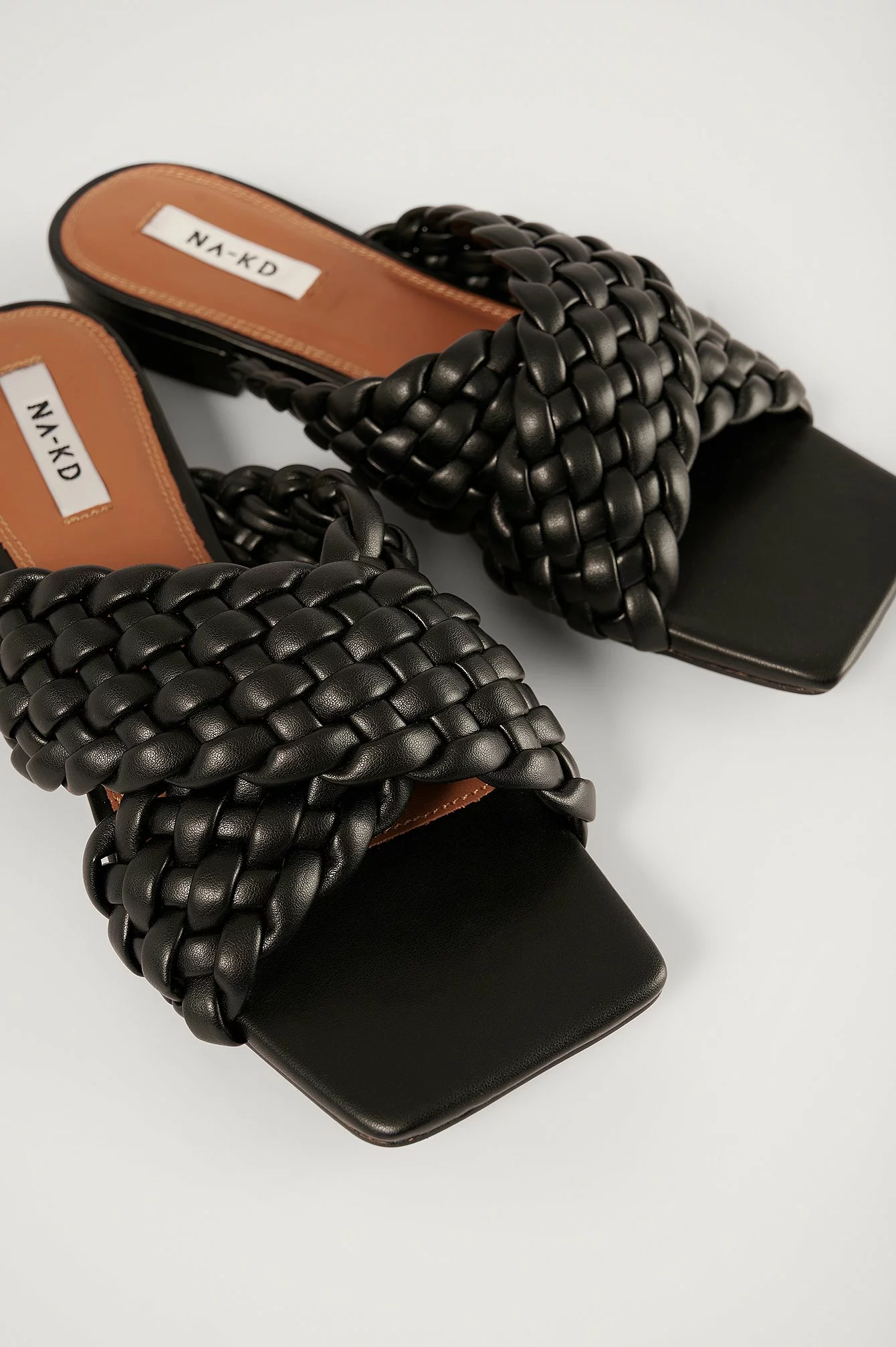 These flats feature a slip-on design, a braided cross design and a squared toe. Heel Height: 2,5 cm / 1 in.