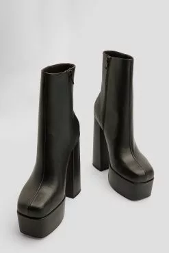 These boots feature a square toe, a side zipper closure, a plateau and a block heel. Measurements in size 39: Sole height: 5 cm / 2 in. Heel height: 14,5 cm / 5.6 in. Shaft height: 15 cm / 5.9 in. Shaft circumference around the calf: 26 cm / 10.1 in.