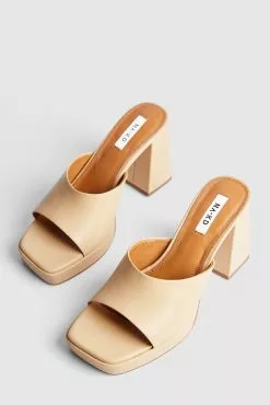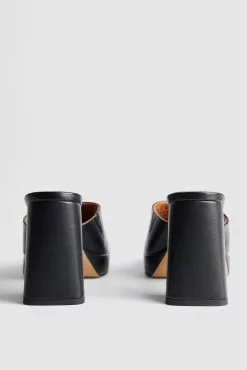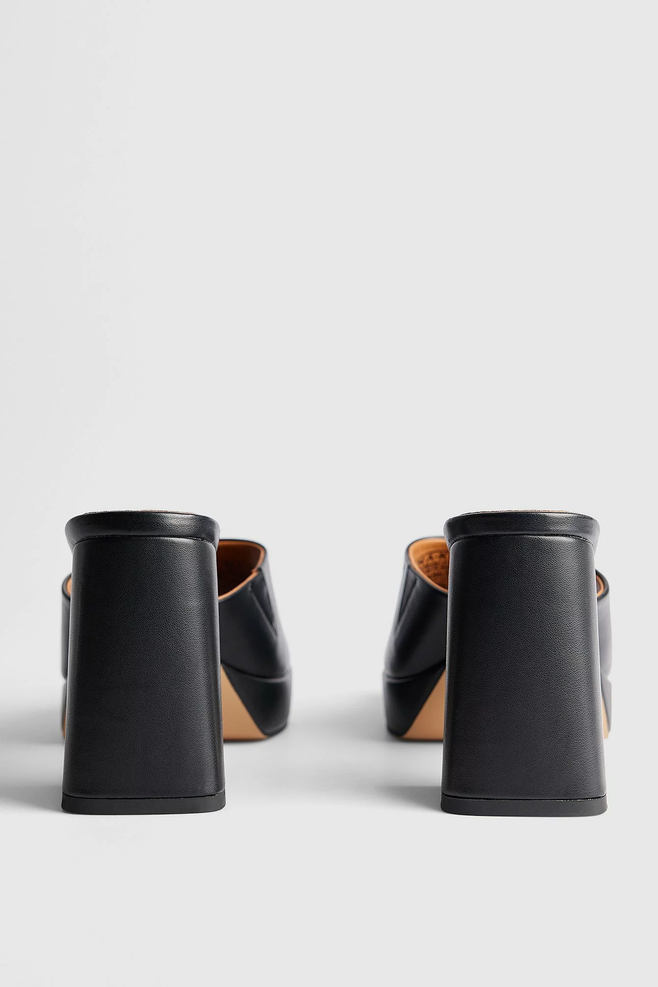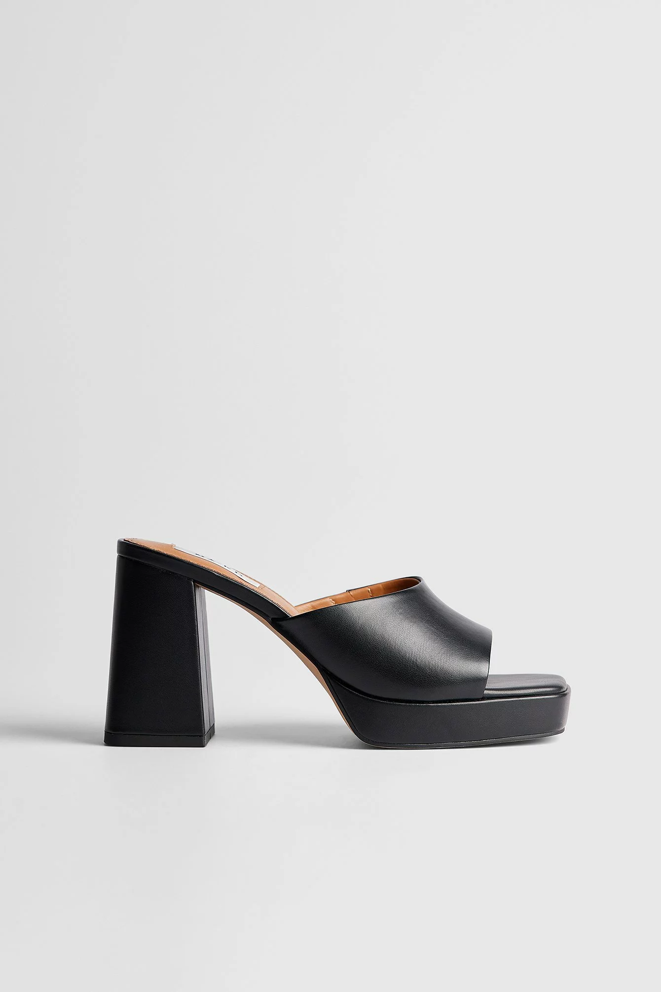 These mules are high-heeled and feature a square toe with a wide foot strap with an elastication on one side. They have a high block heel. Measurements in size 39: Heel height: 9,5 cm / 3.8 in.