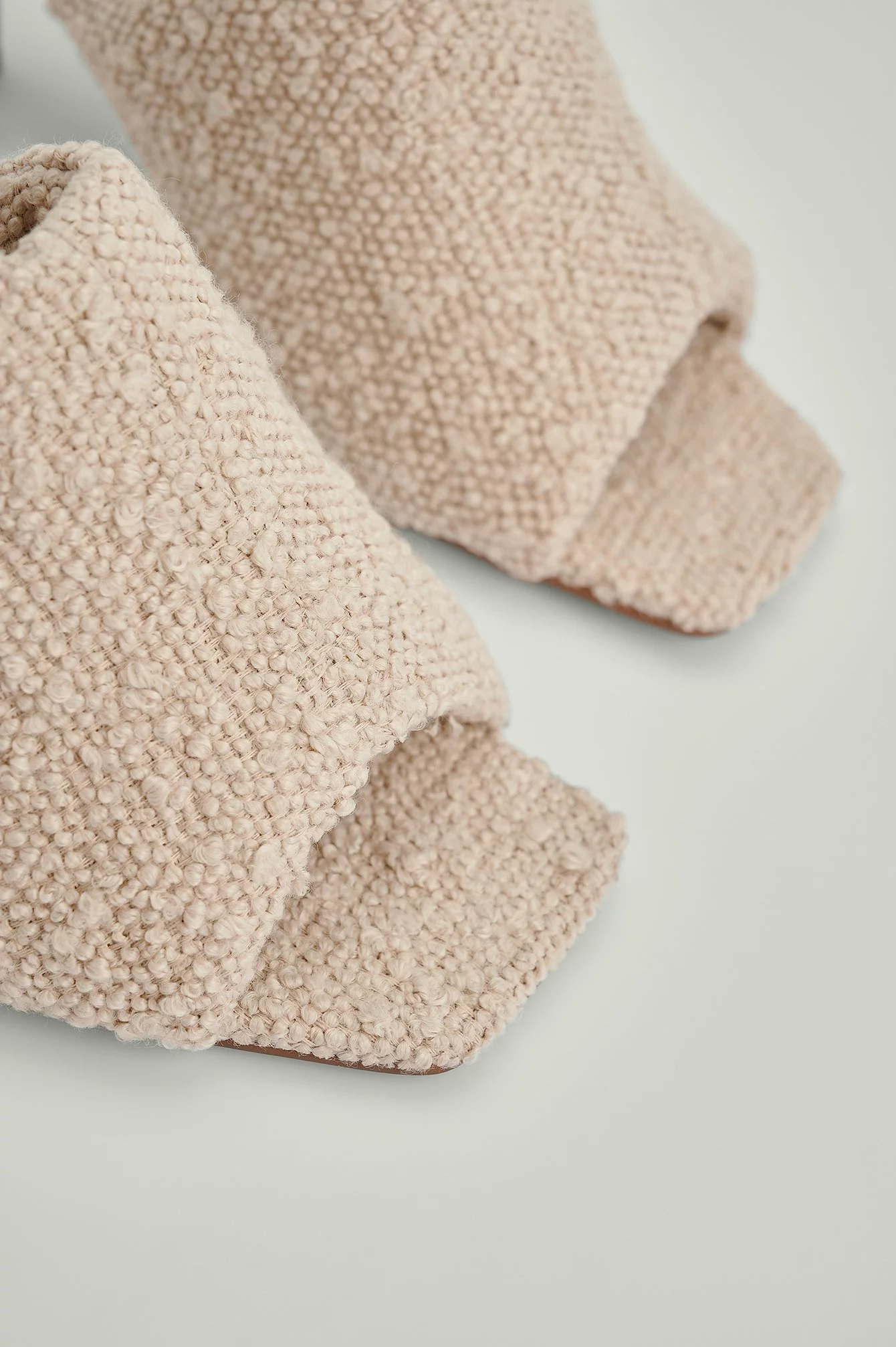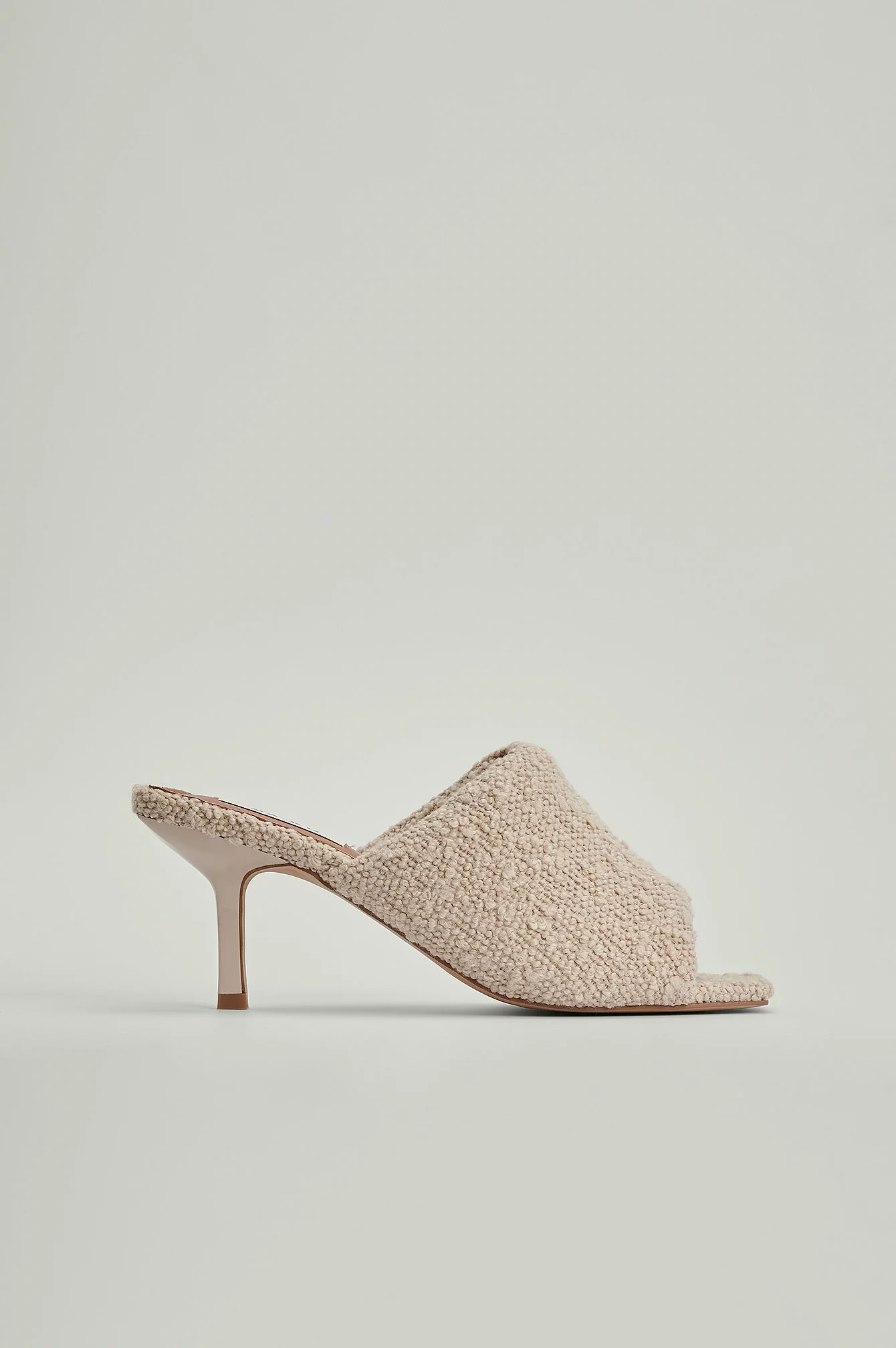 These heels feature square peep toes, a soft fabric and an open heel. Heel Height: 6 cm / 2.5 in.