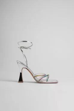 These heels feature a strappy sandal, a square toe with rhinestone embellishments on the straps and a squared heel. Measurements in size 39: Heel height: 10 cm / 3.9 in. Insole length: 25 cm / 9.9 in.