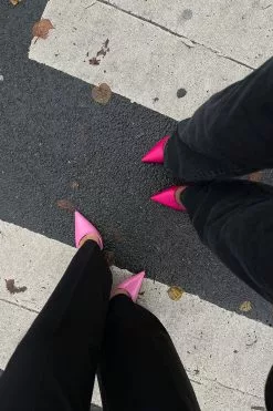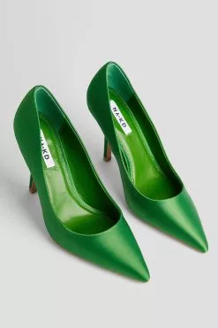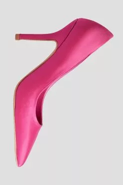These pumps feature a pointed toe, a thin high heel and matte satin material. Heel Height: 10 cm / 3.93 in.