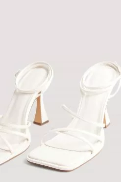 These heels feature a square toe. They have crossover straps and an adjustable, thin ankle-strap fastening. These heels feature a curved high heel. Measurements in size 39: Heel height: 12 cm / 4.72 in.
