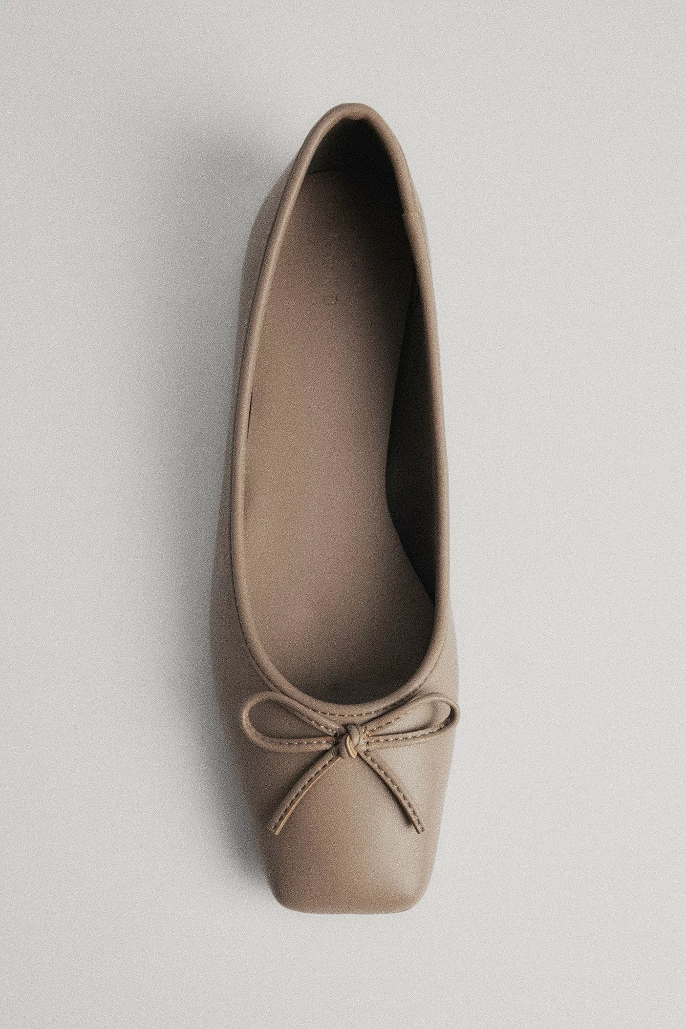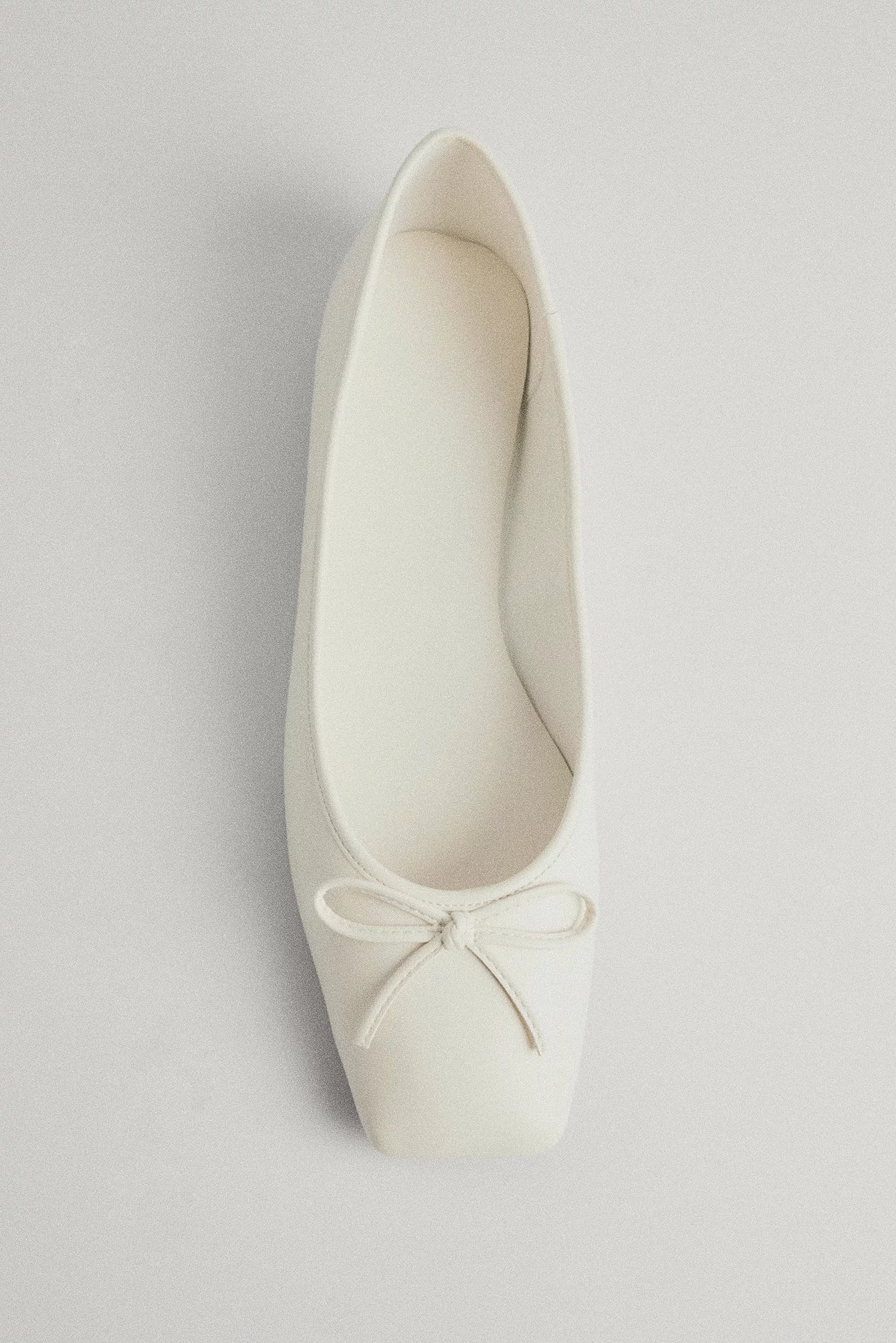 These ballerina shoes feature a shiny material. They have a bow detail at the front and a square shape. Measurements in size : Heel height: 1 cm / 0.39 in.