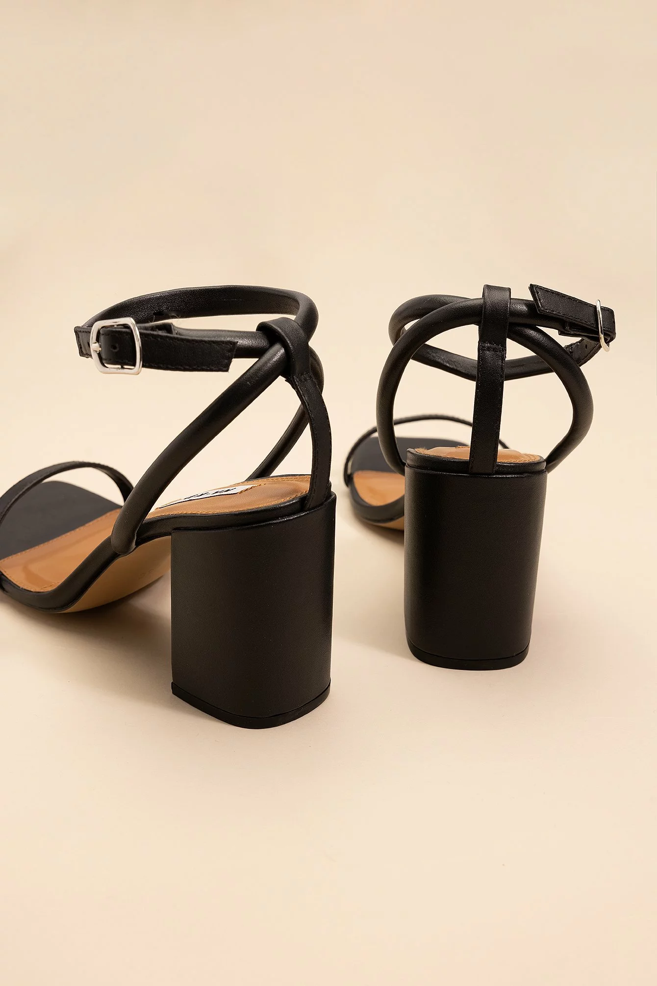 This strappy sandal features a squared toe, a thin strap on the front, an adjustable ankle-strap fastening and a block heel. Measurements in size 39: Heel height: 8,5 cm / 3.5 in.