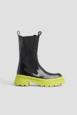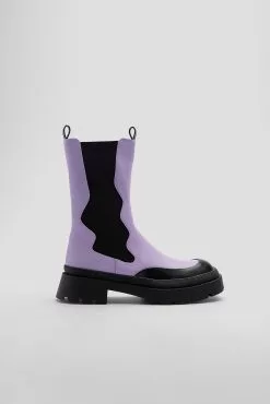 These boots feature a rounded toe, a chunky rubber sole and a calf high shaft with elastic, wavy details. Measurements in size : Sole height: 2,5 cm / 1 in. Shaft height: 23 cm / 9 in. Shaft circumference around the calf: 28,5 cm / 11.2 in.