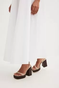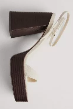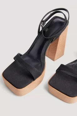 This strappy sandal features a square toe. It has an inner sole in cotton material and a front strap. This strappy sandal features a block heel and a buckle closure on the ankle. Measurements in size 39: Sole height: 3,5 cm / 1.37 in. Heel height: 11,2 cm / 4.4 in.