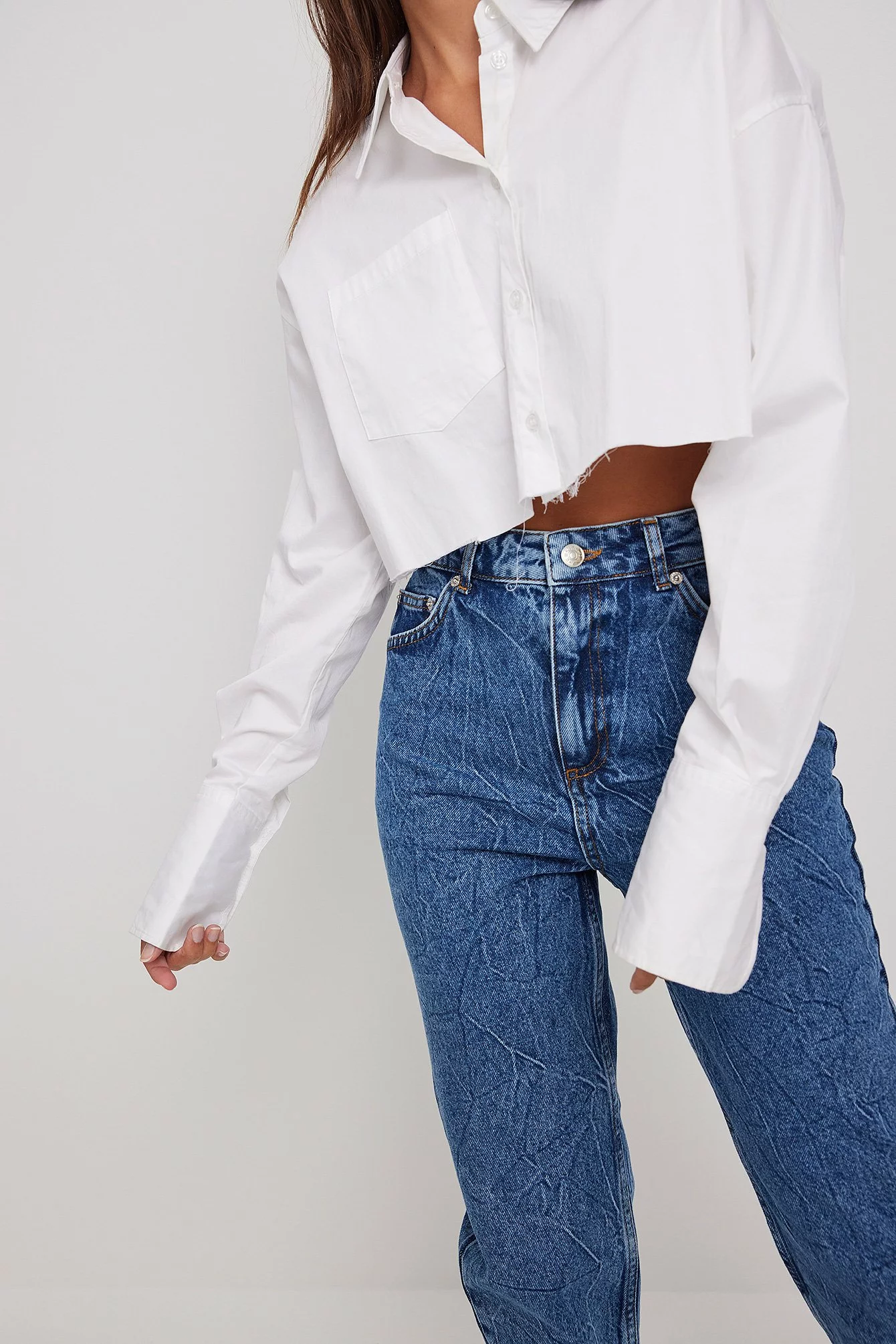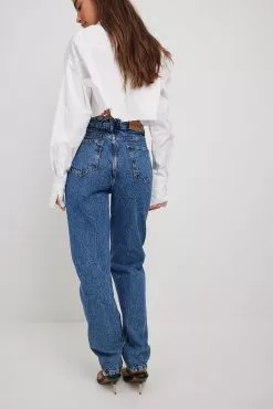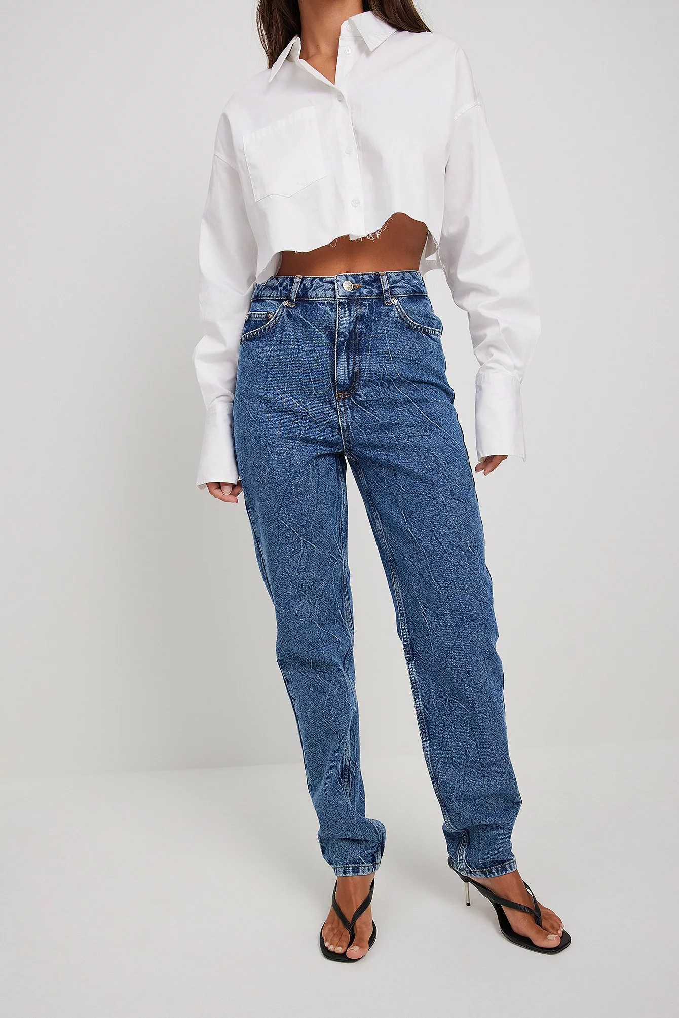 These mom jeans feature a high waist, a zip and button closure, long legs, a slim fit and a washed pattern.