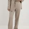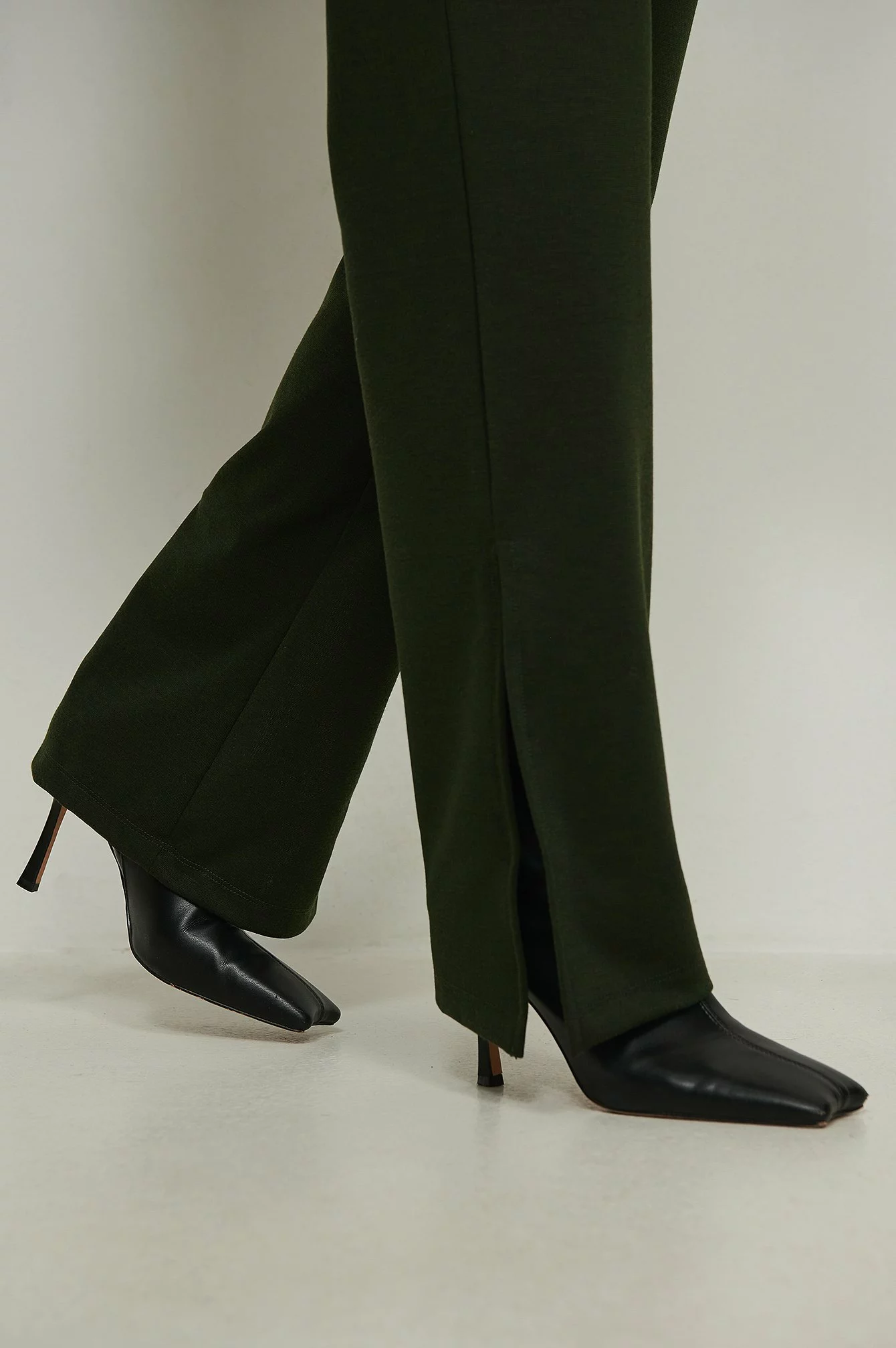 These trousers are made of jersey and feature an elasticized waistband, a straight fit and ankle slits on each leg.