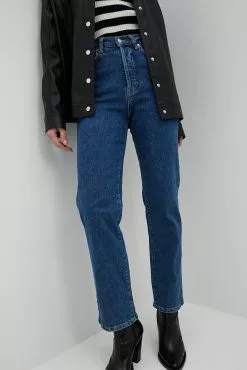 These jeans feature a high waist. They have a five-pocket design and button closures. These jeans feature a belt loop and a straight leg. Inseam length in size 36: 73 cm / 28.74 in.