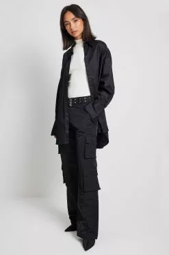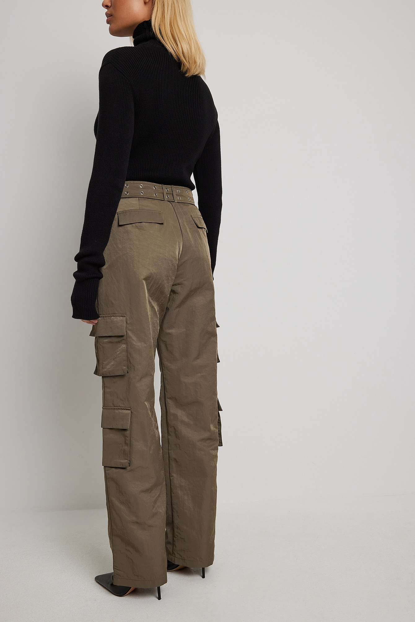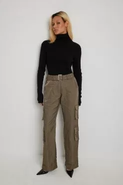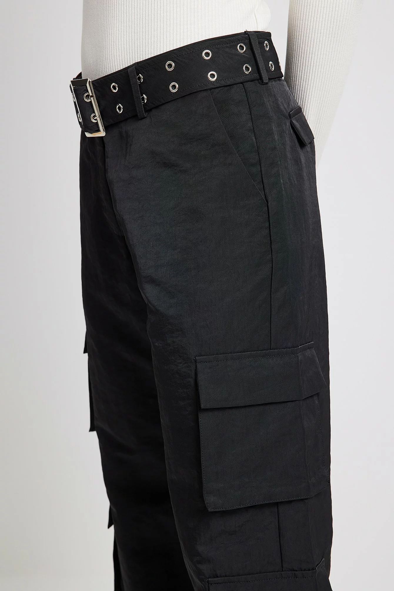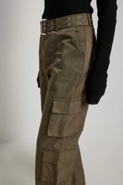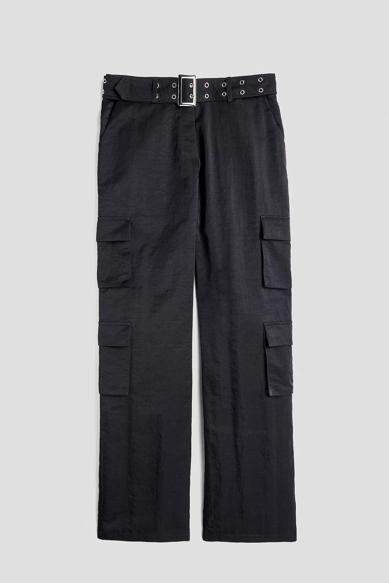 These cargo pants are belted and feature a zipper, hook and button closure. They have two side slant pockets and two back mock pockets. These cargo pants feature flap pockets along each leg and a utility design. Inseam length in size 36: 81 cm / 31.88 in.