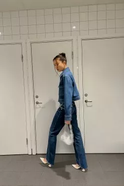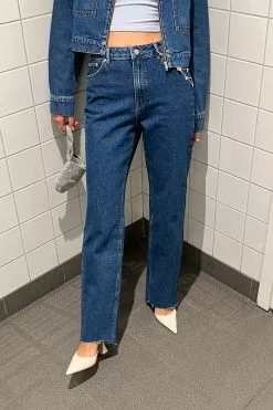 These 5-pocket jeans feature a mid-waist design, a loose fit and raw, asymmetric bottom hems.