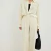 These suit pants are on the back and feature a straight leg, a mid waist, a cut out detail and a zipper closure.