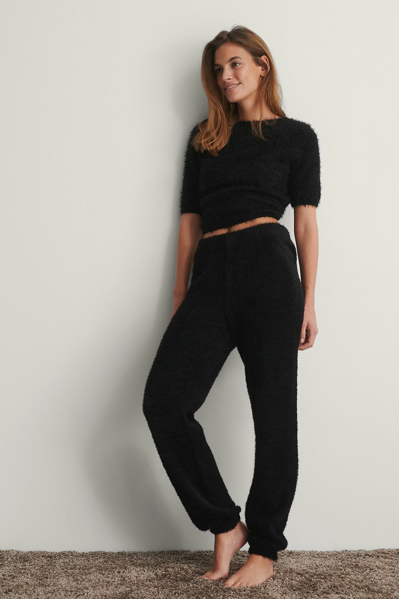 These joggers are perfect for a date with your Netflix account and feature a high waist, a super soft, cozy, stretchy material and straight legs with elasticized bottom hems.