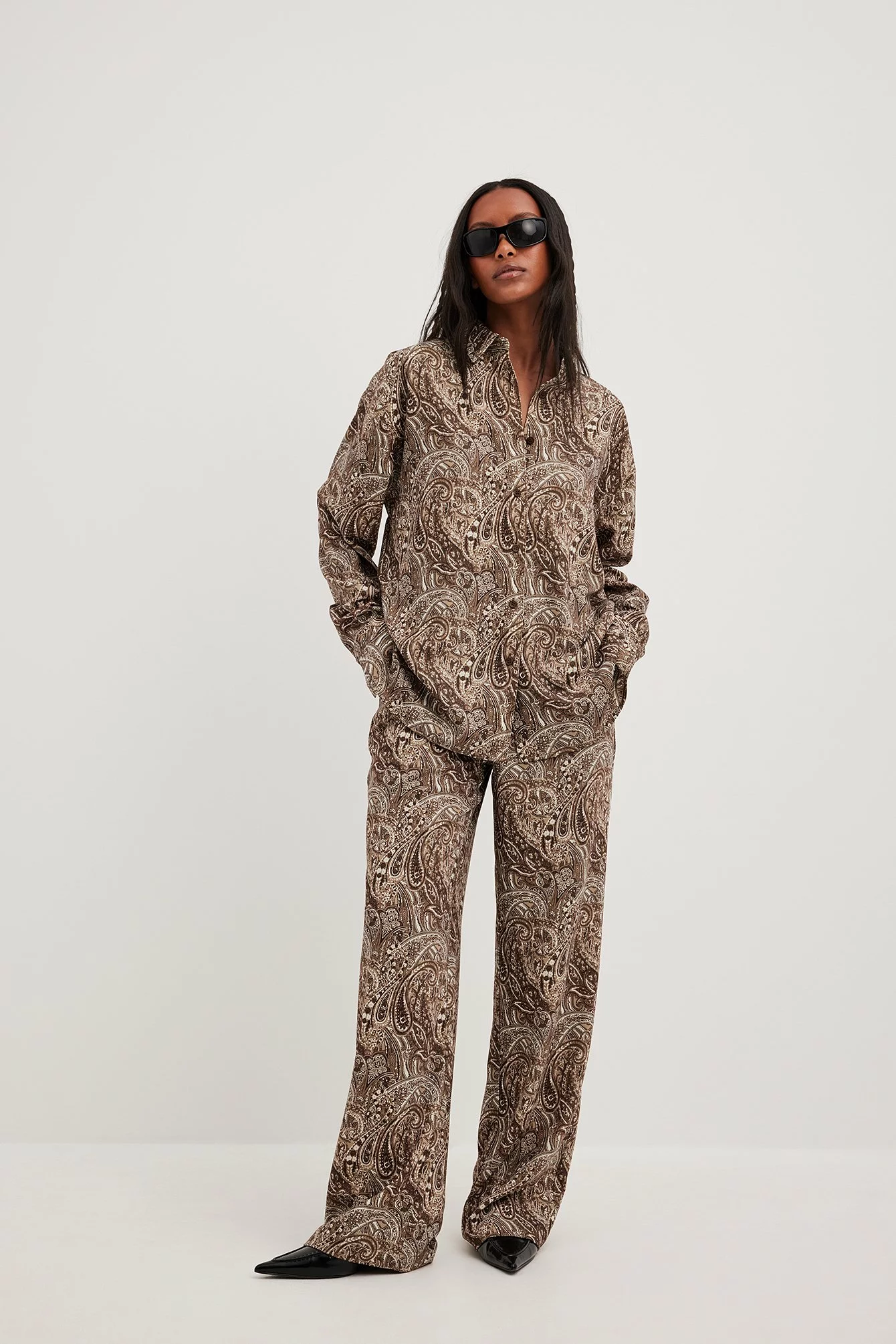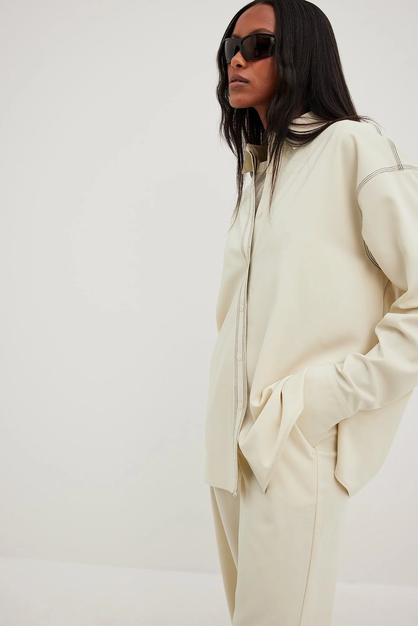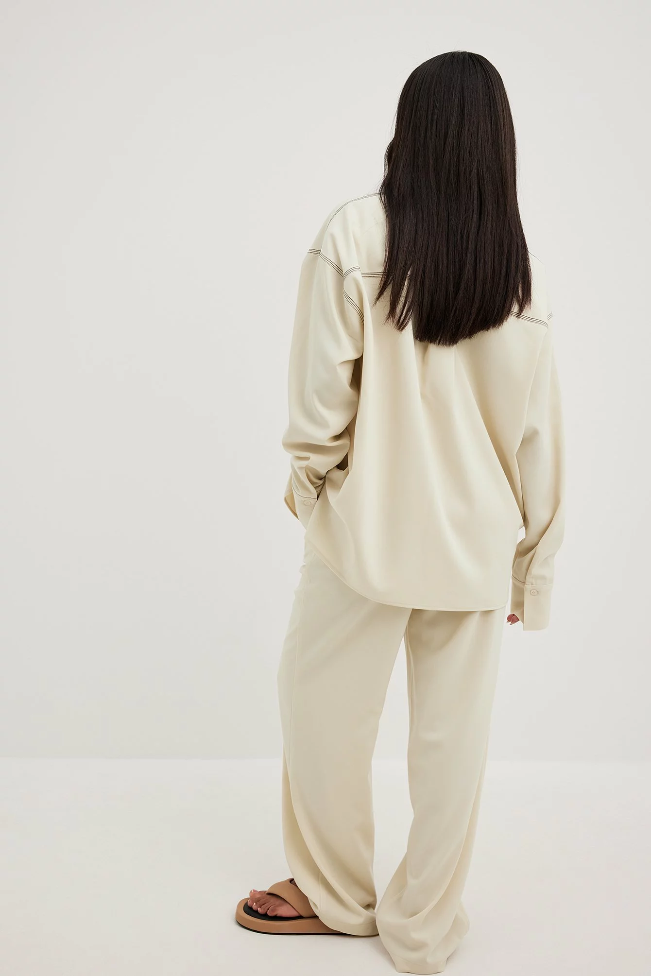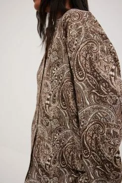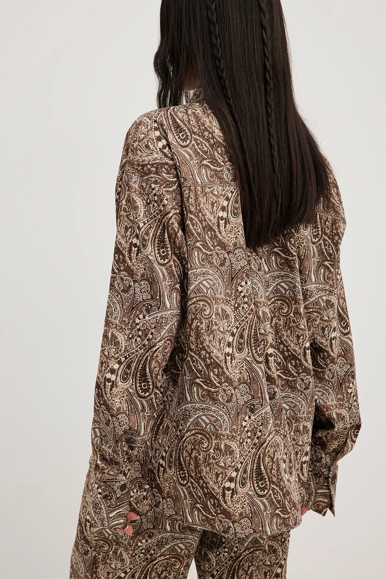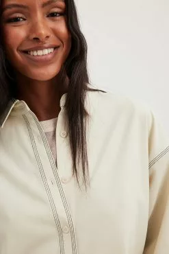 This shirt is long and features a classic collar. It has an oversized fit and a relaxed loose fit. This shirt features a button closure down the front and long sleeves with single button cuffs.
