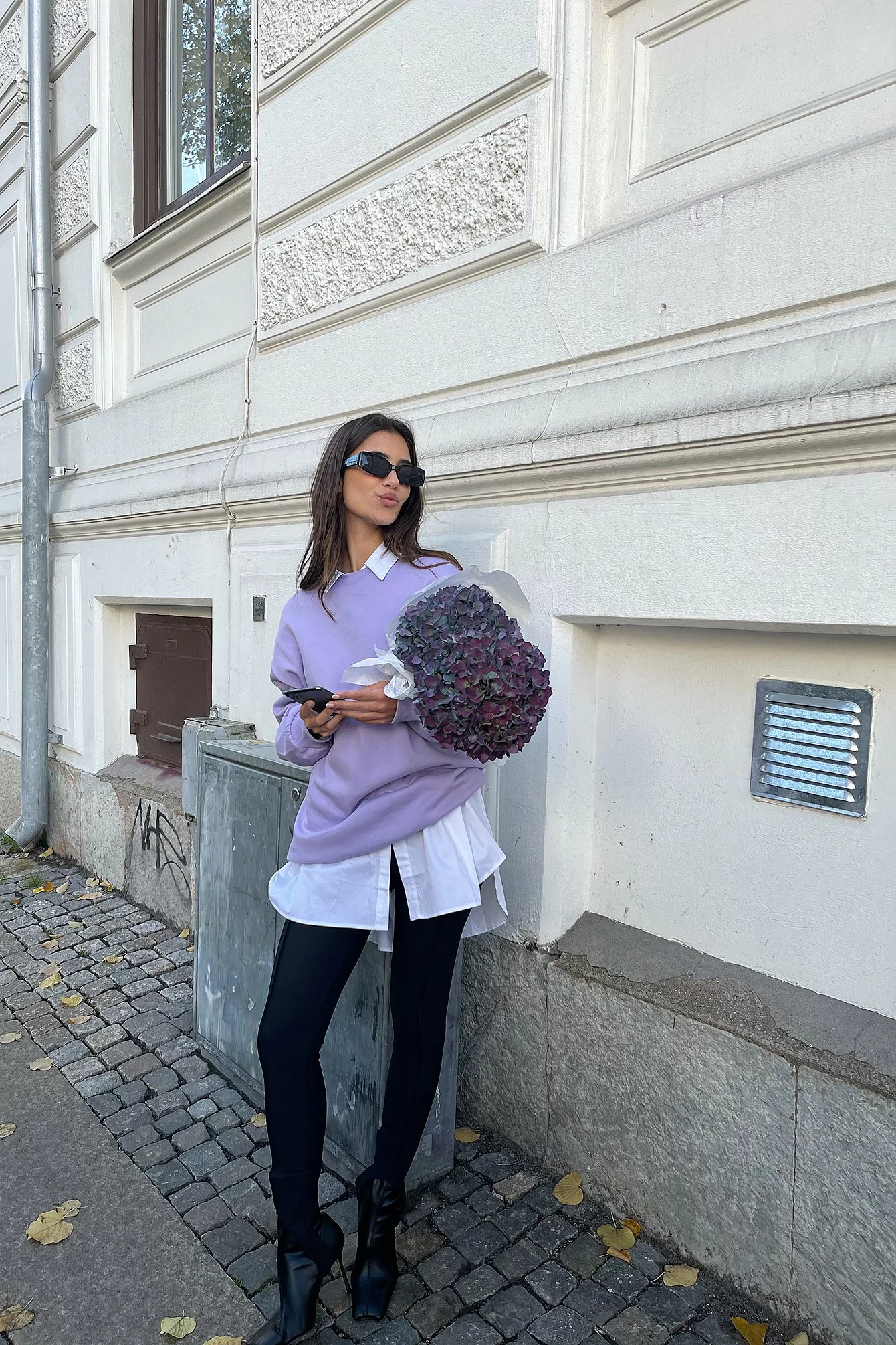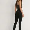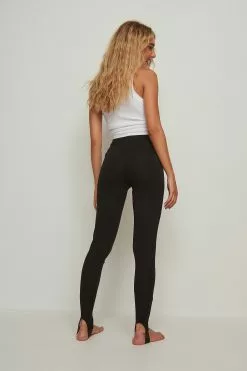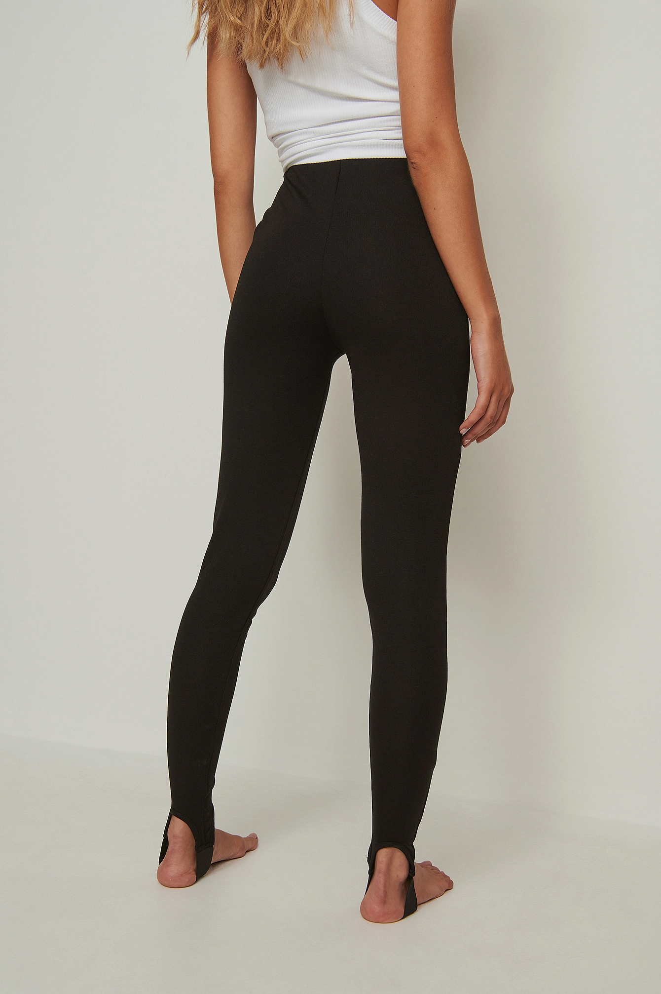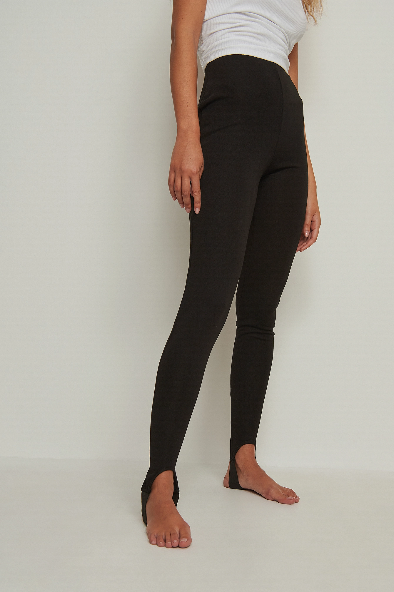 These leggings feature a high waist, tight fit and a detail with a loop on the bottom hem.