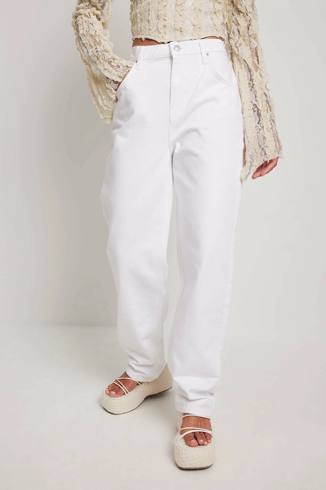These 5-pocket jeans feature a loose fit, a mid waist and a zipper and button closure.
