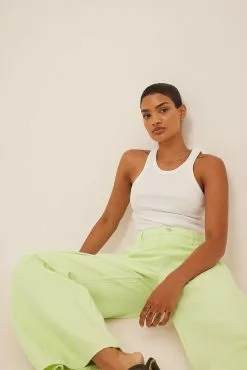 These jeans feature a cargo design, a zipper and button closure, a high waist and a wide leg.