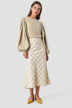 This top by NA-KD Trend features long puff sleeves, a button closure at the back and on the sleeves and a round neckline.