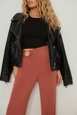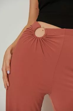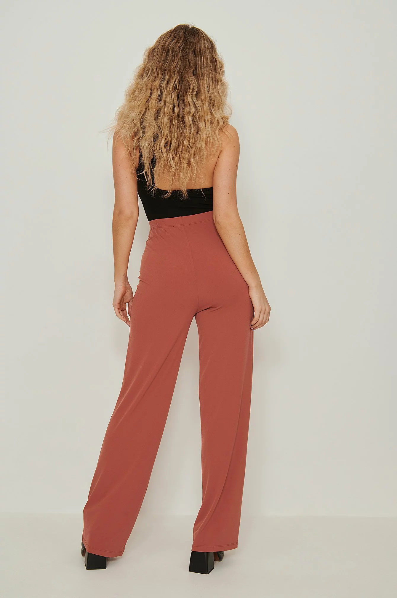 These trousers feature an elasticized waistband with a ring detail, wide legs and a flowy fit.